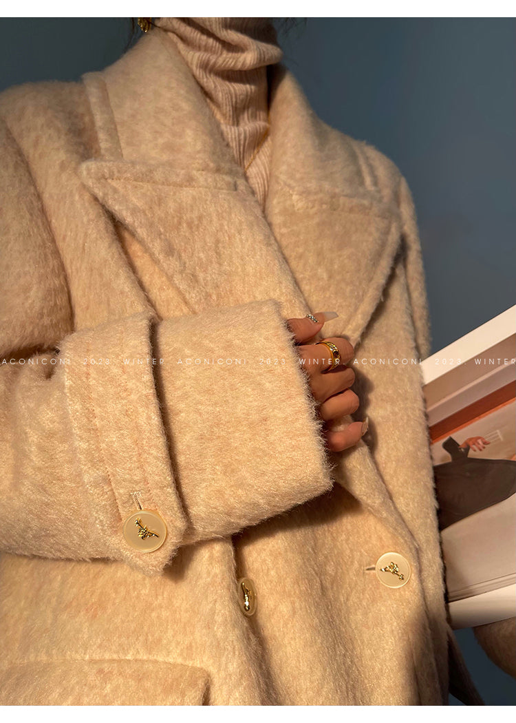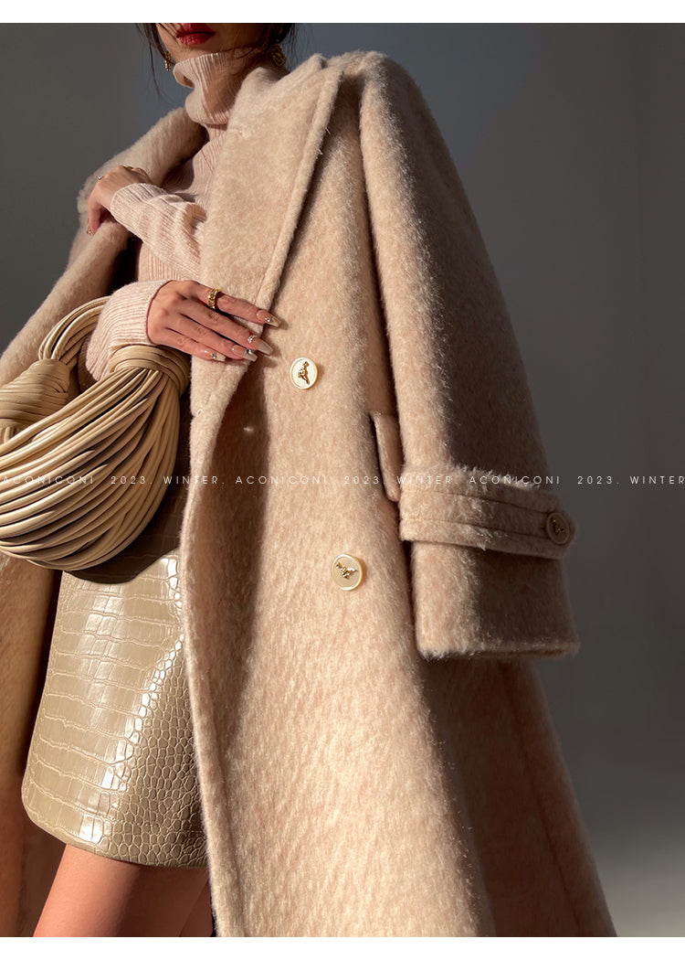 Aconiconi|Galan Sumu long-haired high-grade woolen long coat- Kalanchoe