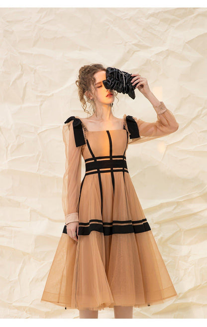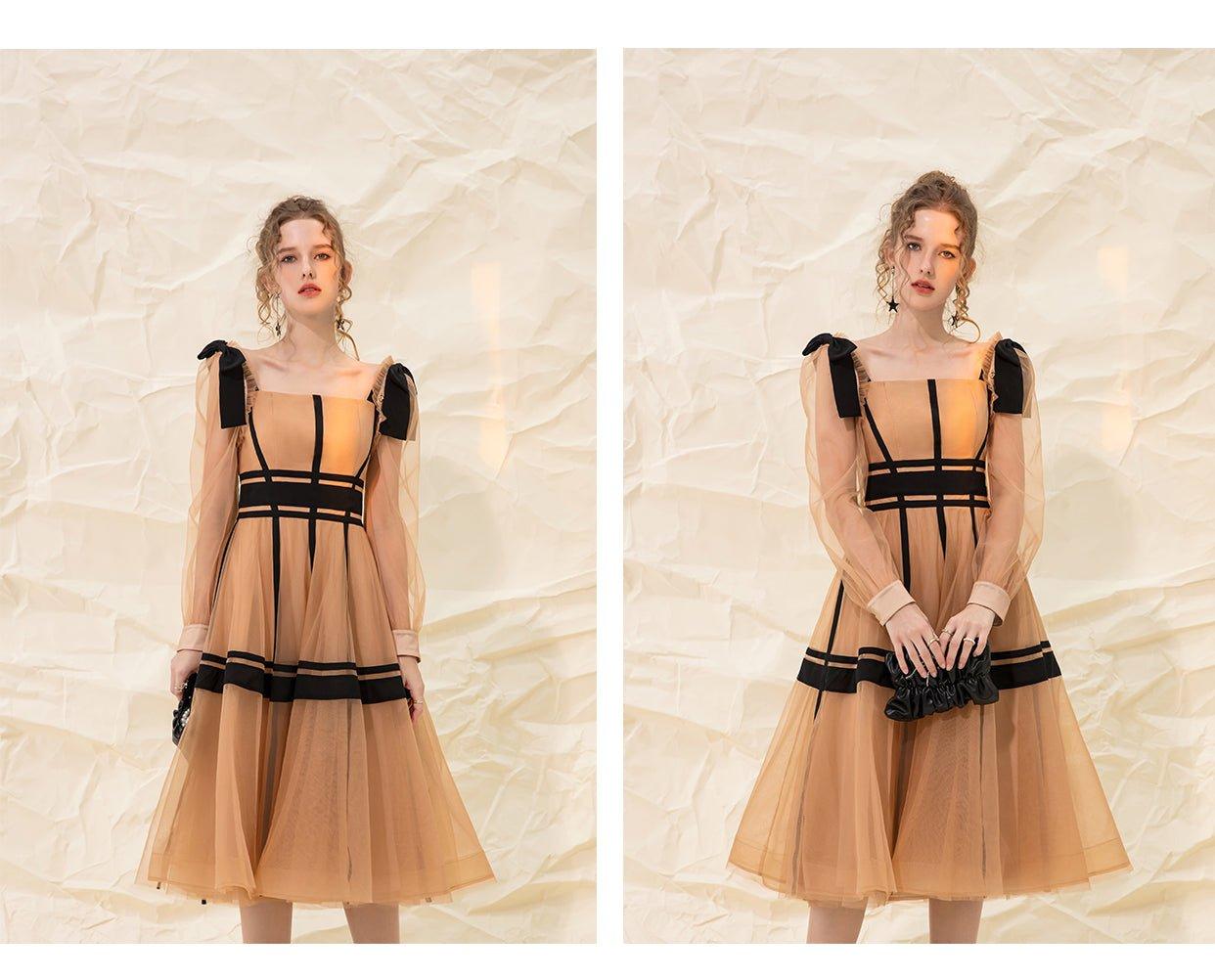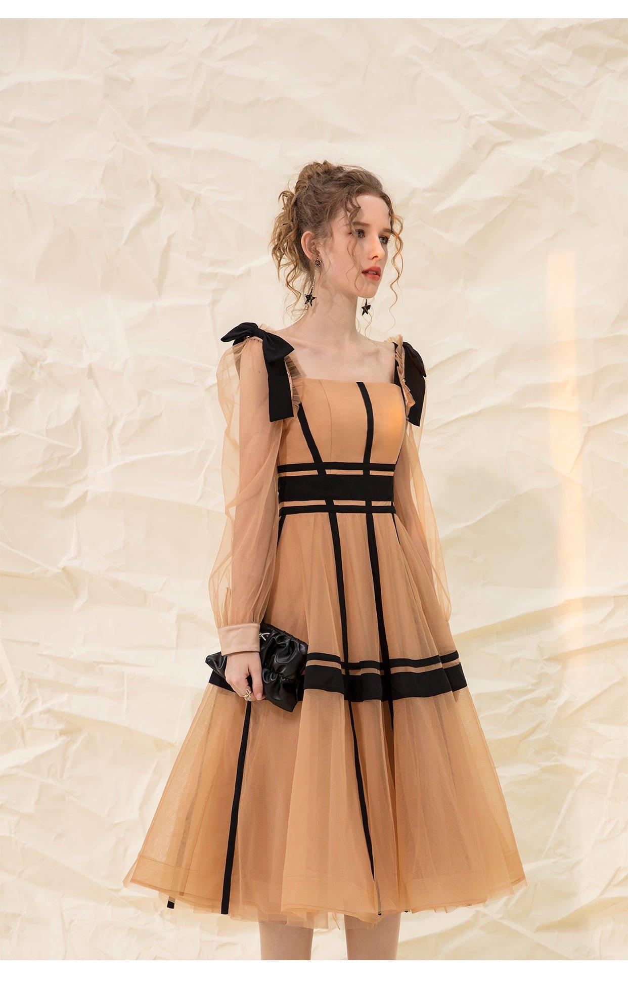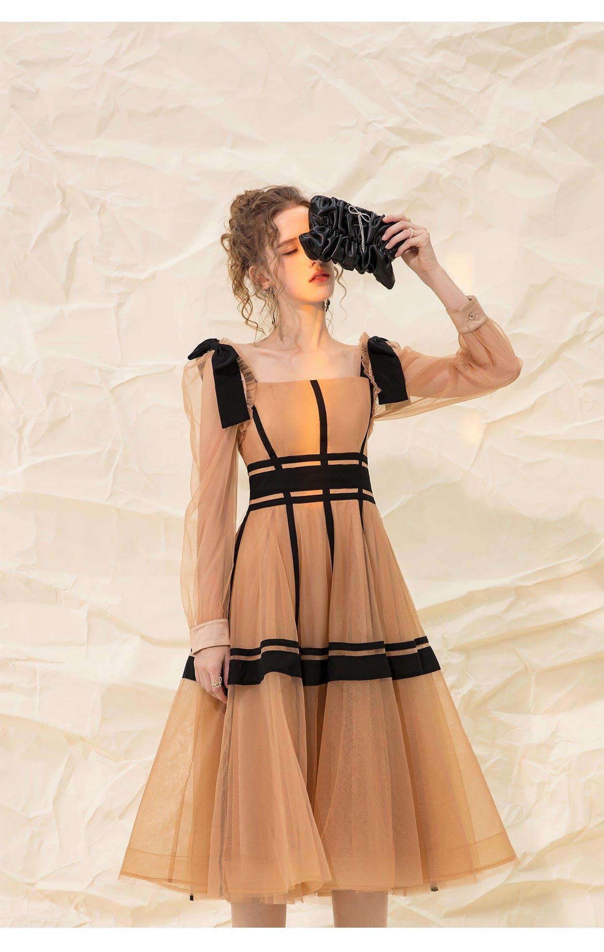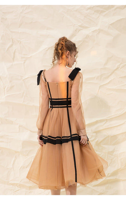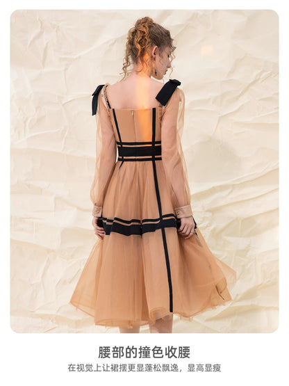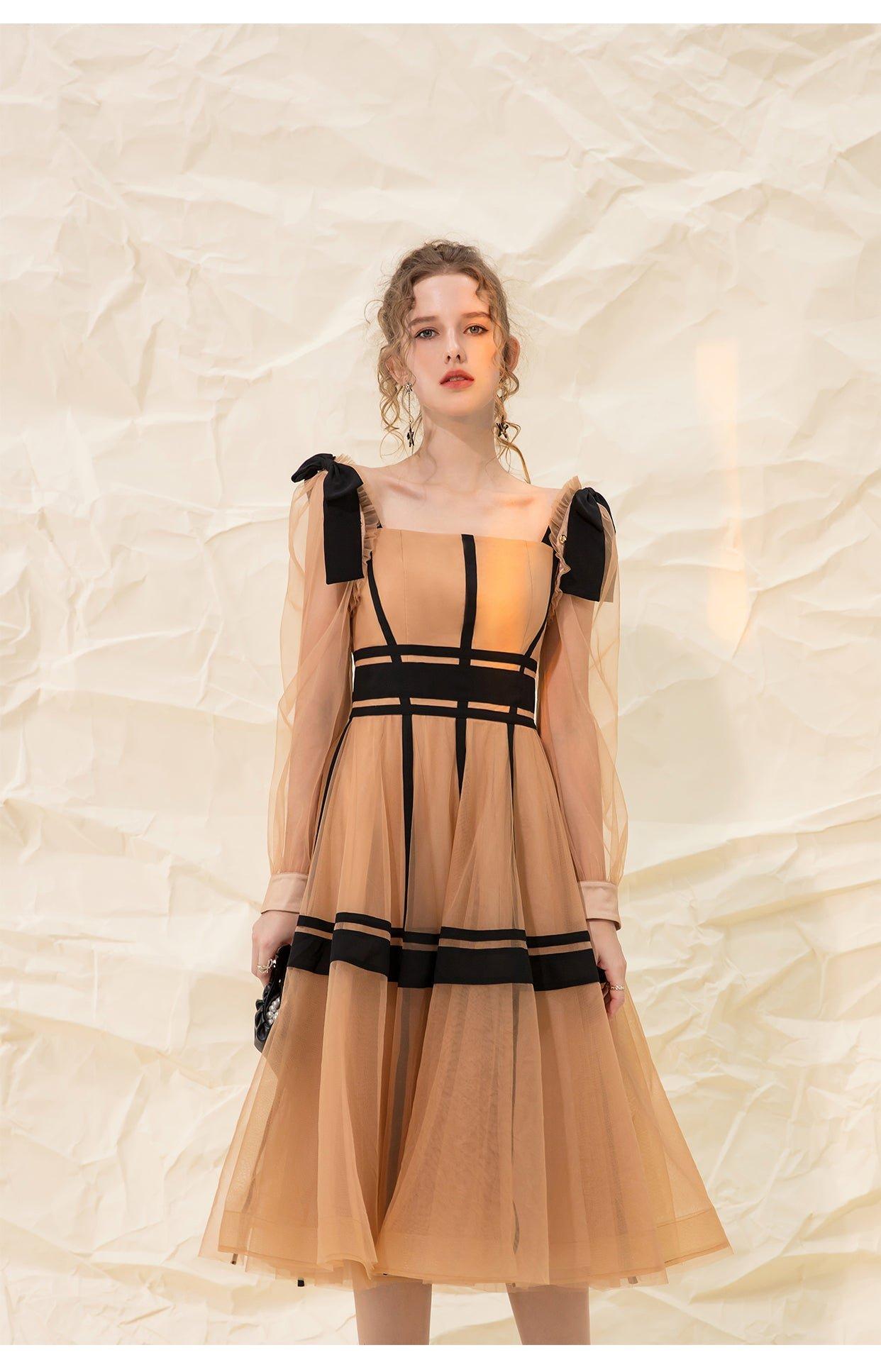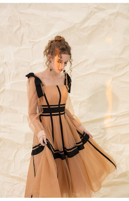 Luxury design suspender mesh detachable long-sleeved dress - Tigor