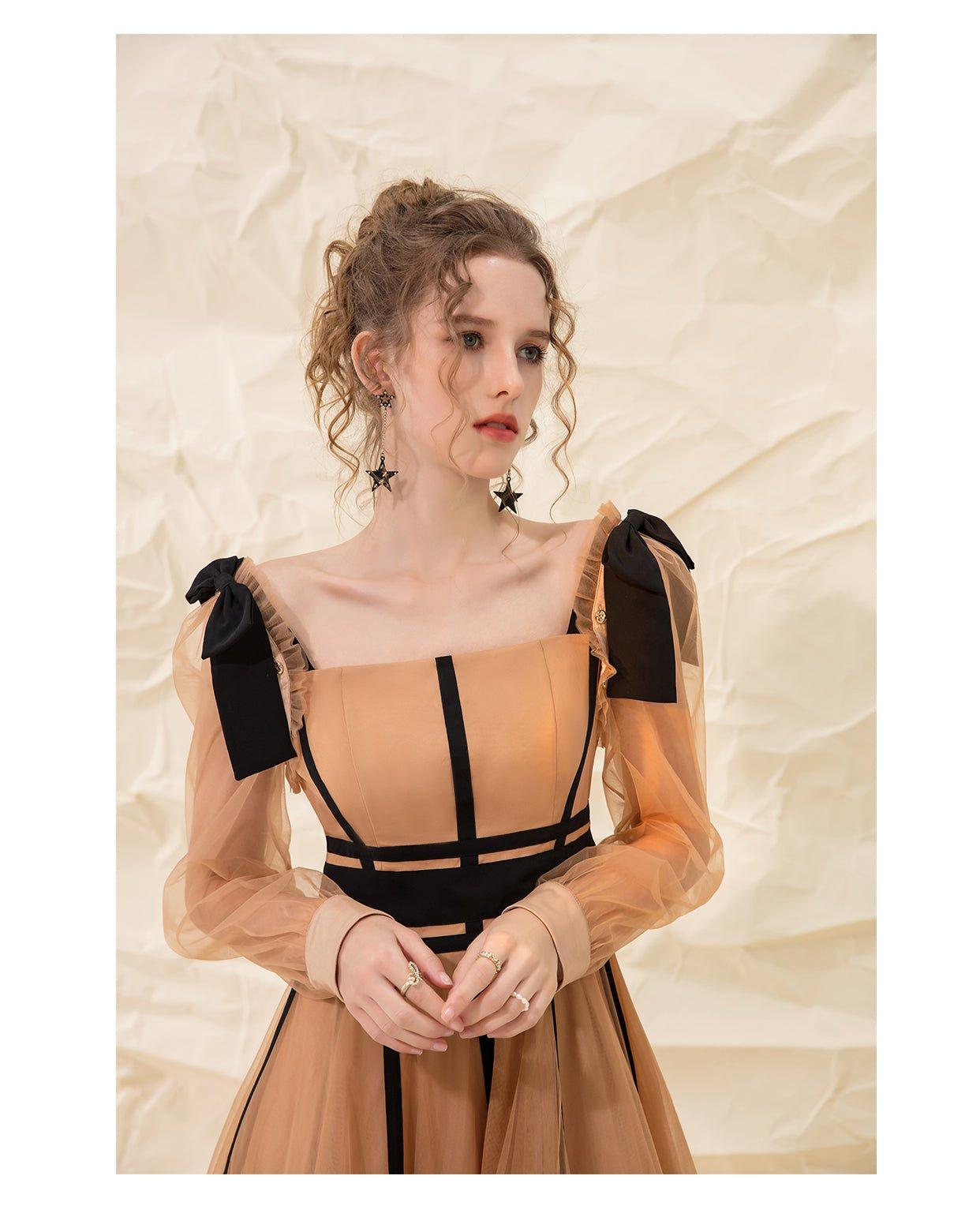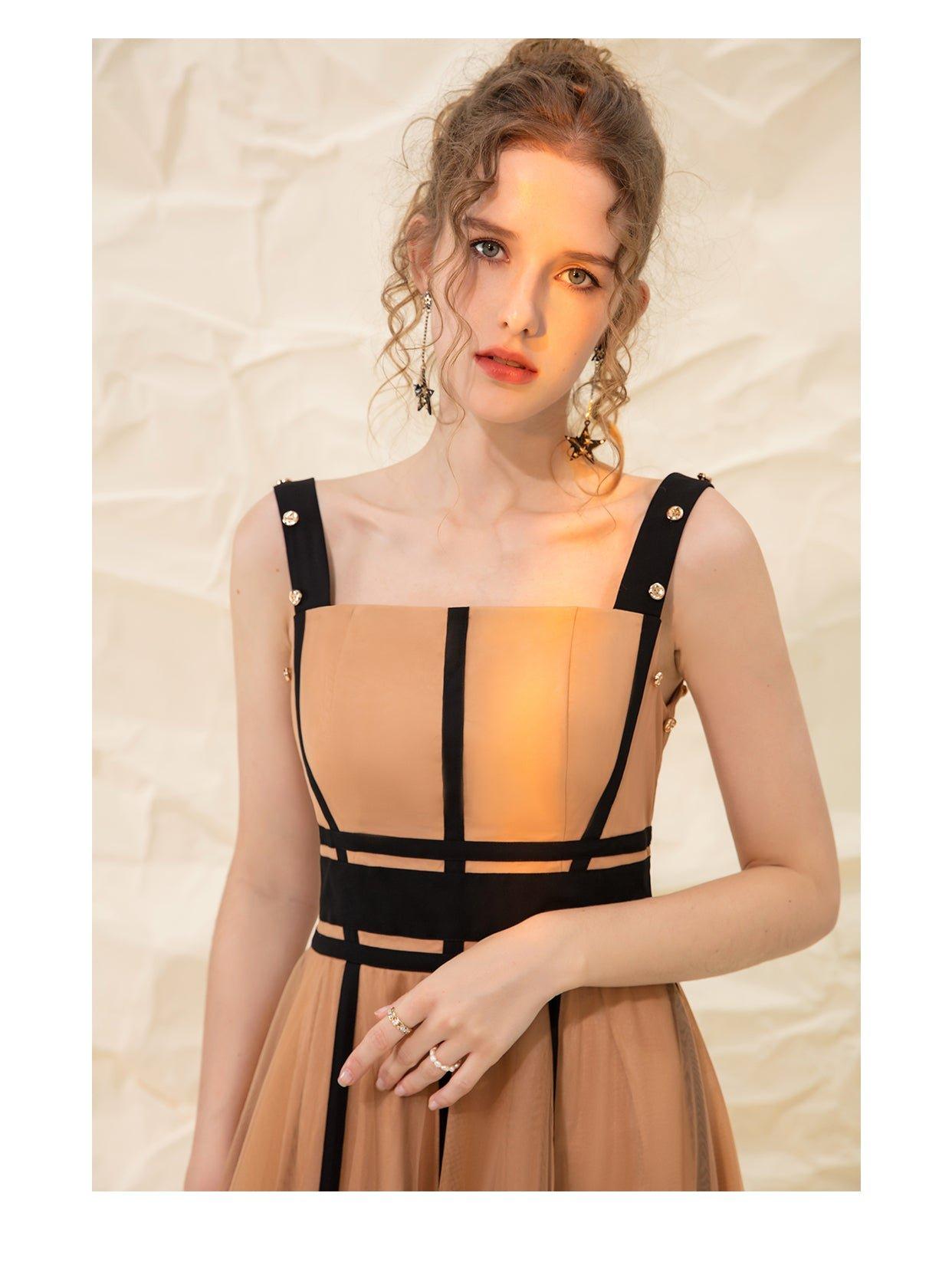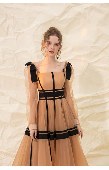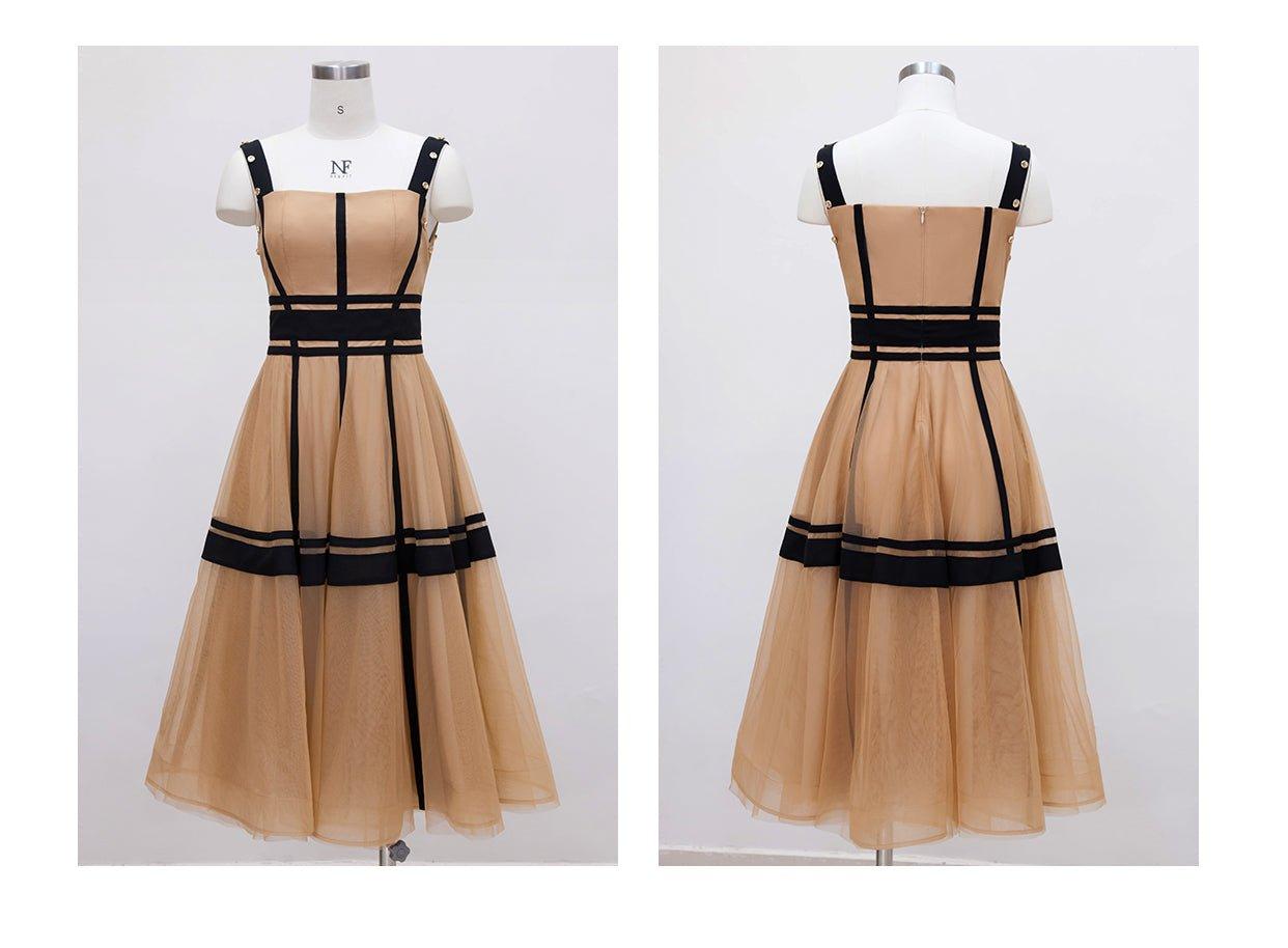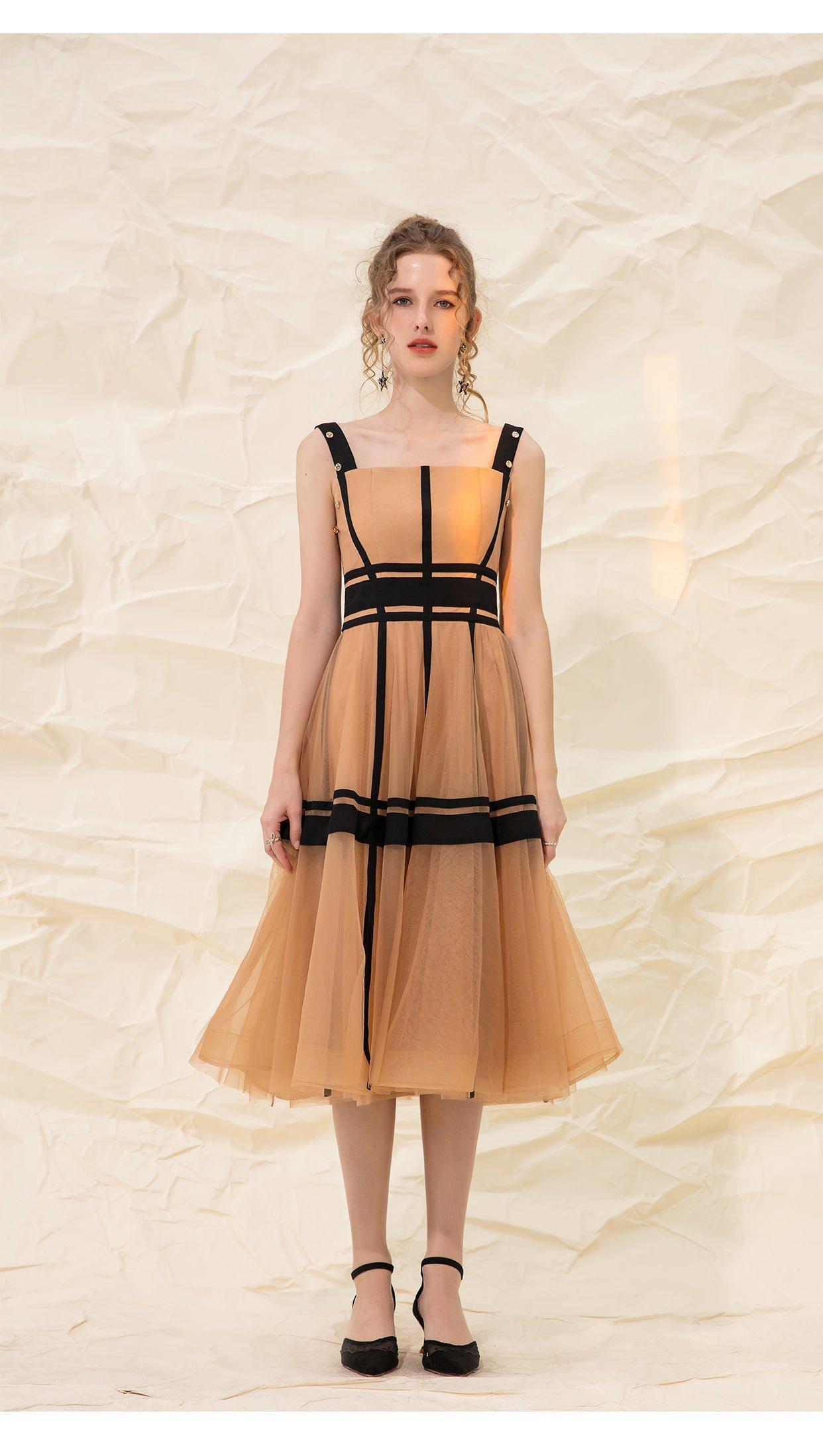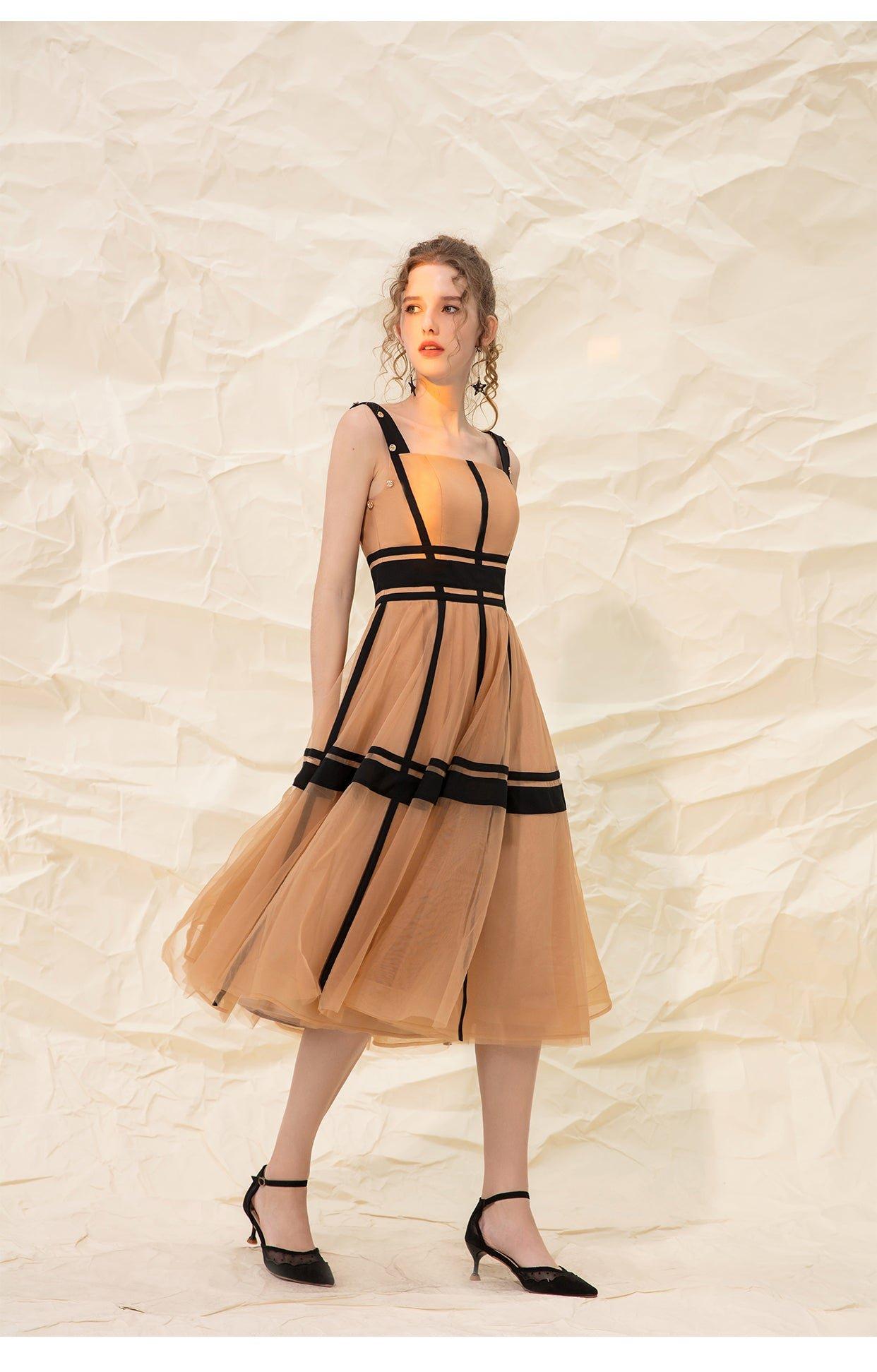 Luxury design suspender mesh detachable long-sleeved dress - Tigor