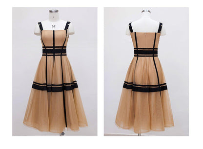 Crafted with meticulous attention to detail, this dress features a stunning suspender design that adds a touch of allure to your ensemble. The mesh fabric delicately drapes over your figure, creating a mesmerizing silhouette that is both flattering and enchanting.