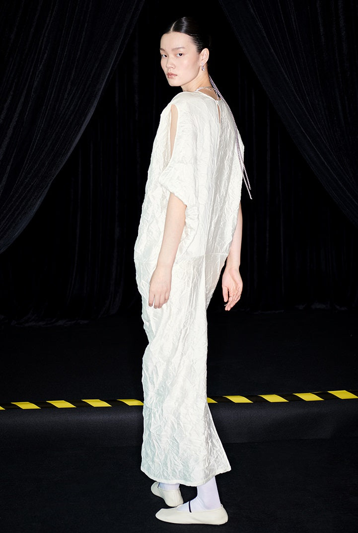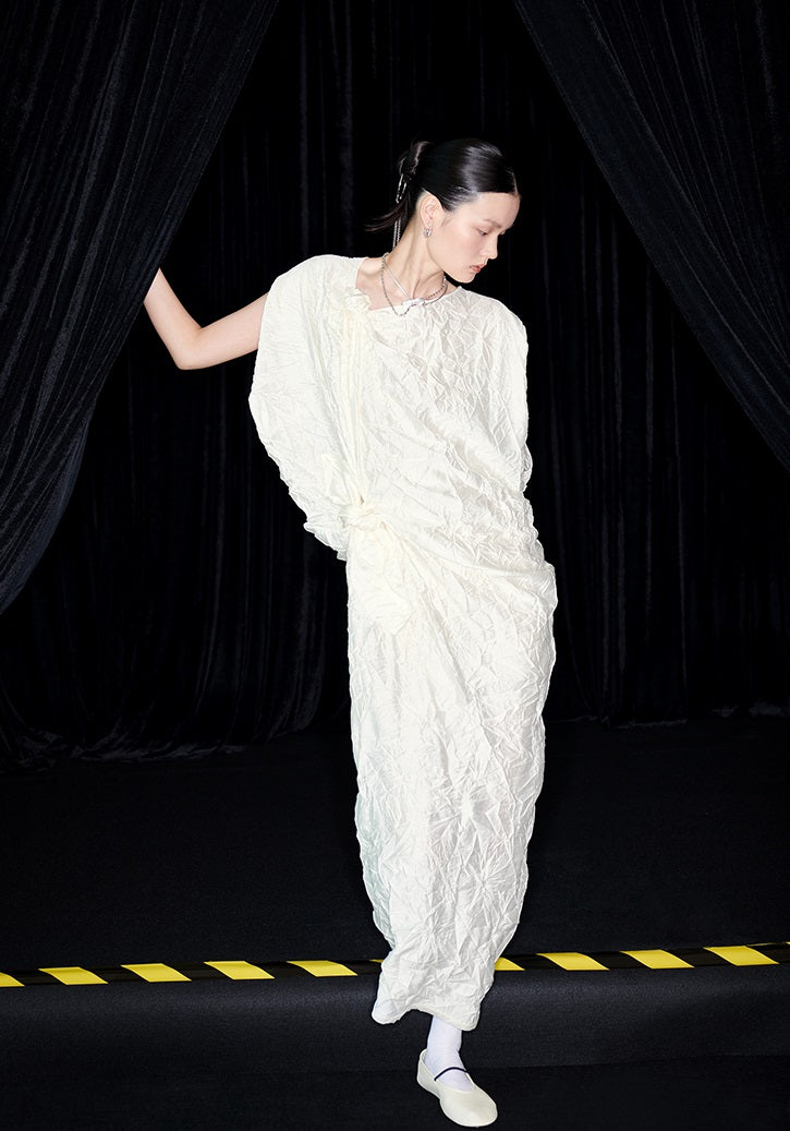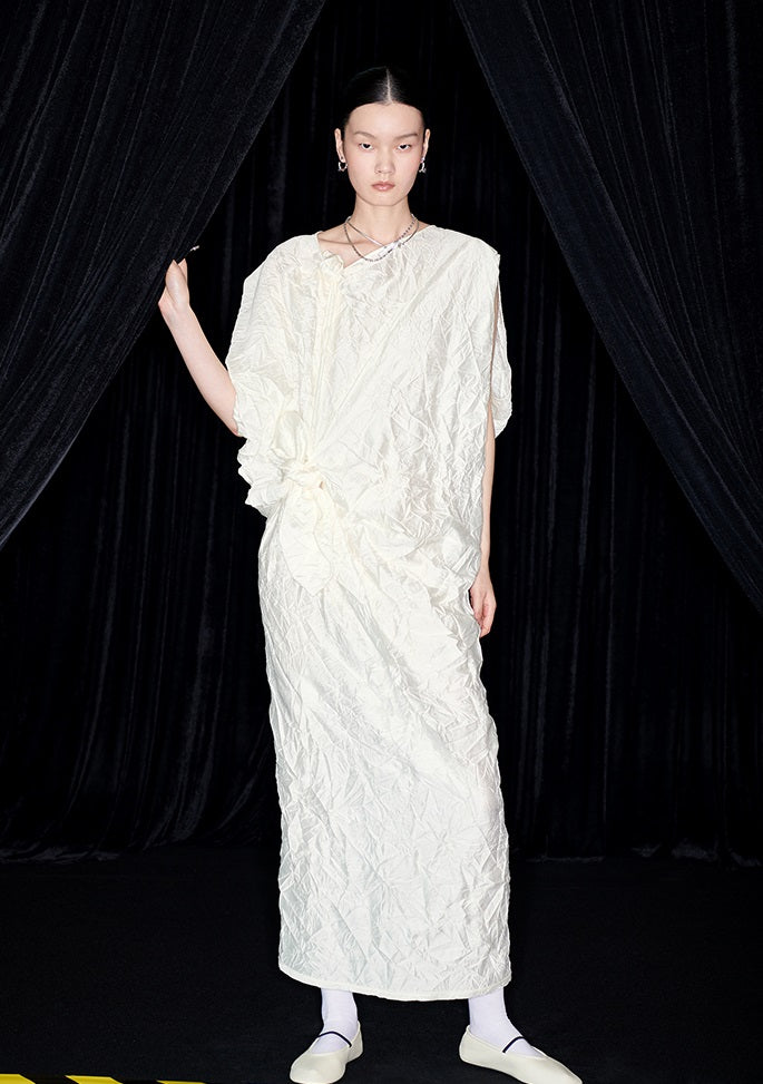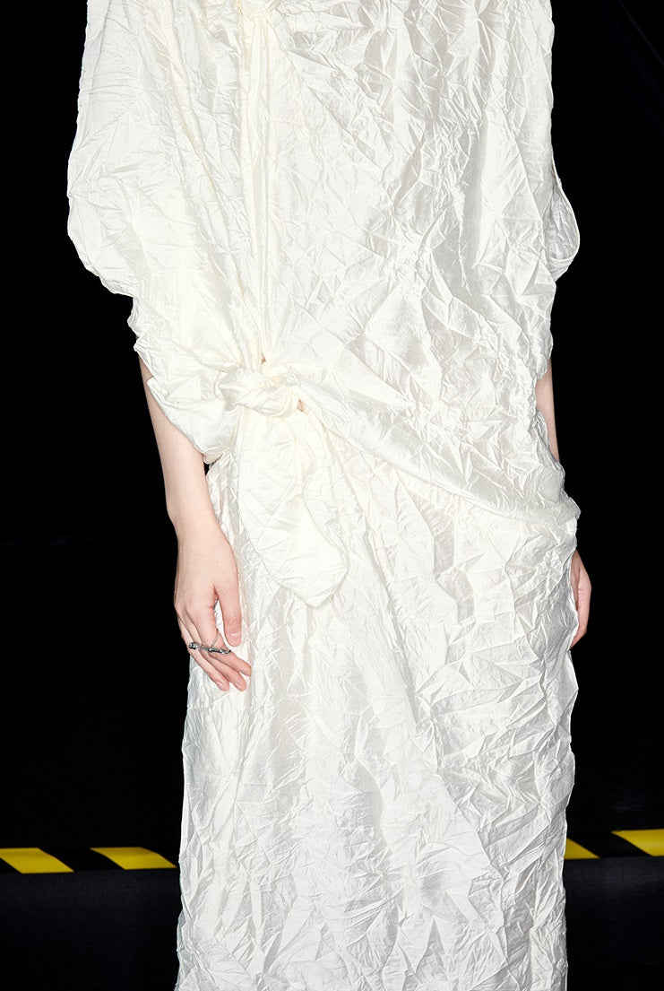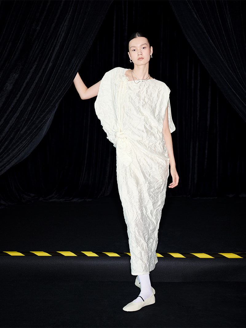 M essential Mackay designer Comfort pressed pleated irregular cut dress - calc.