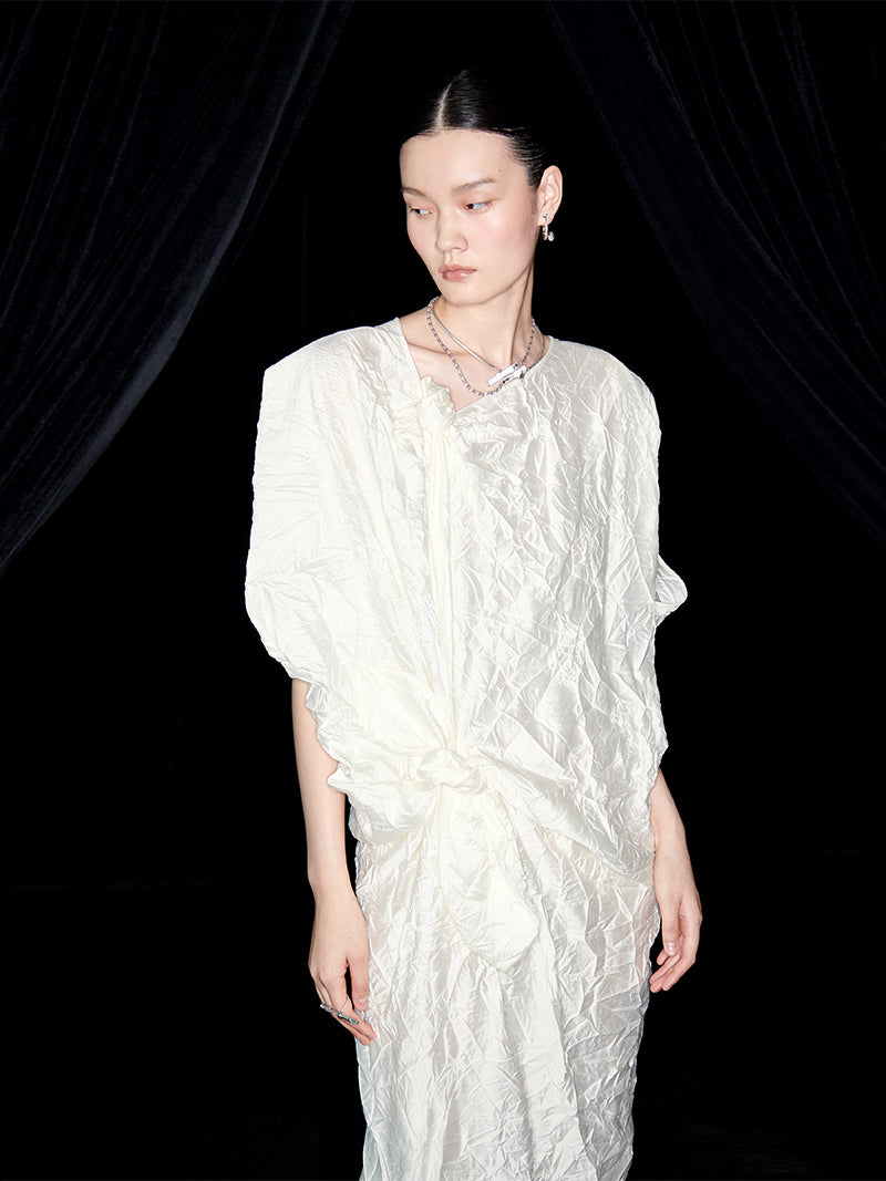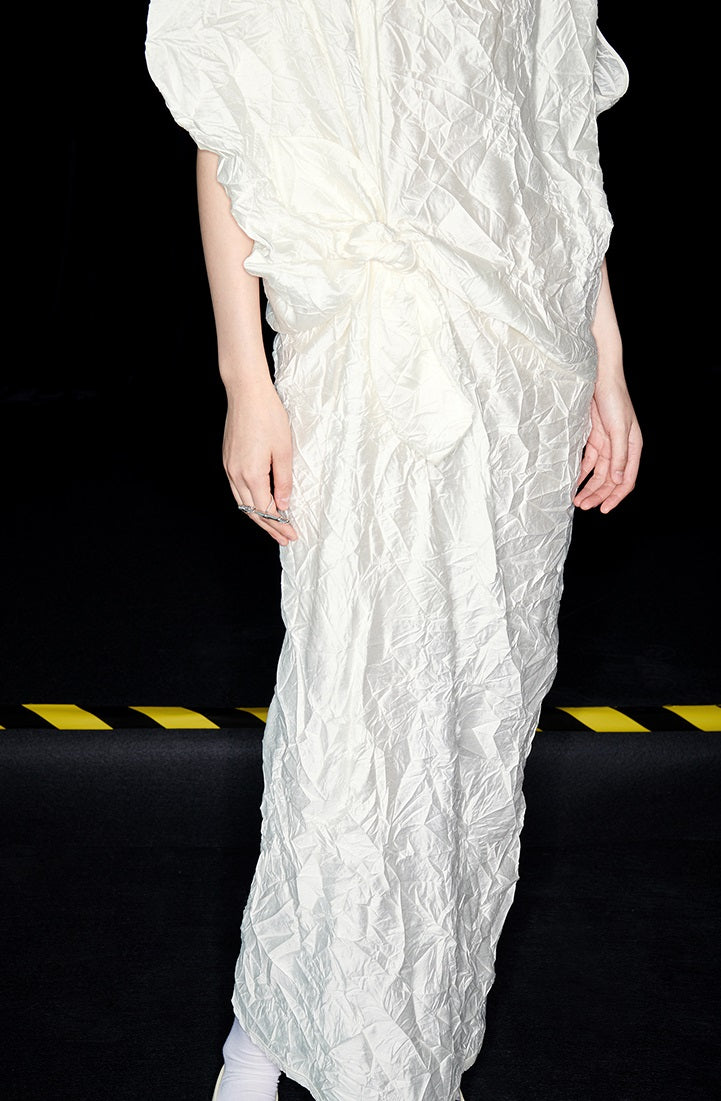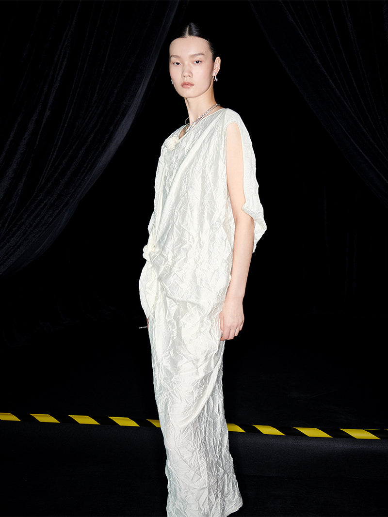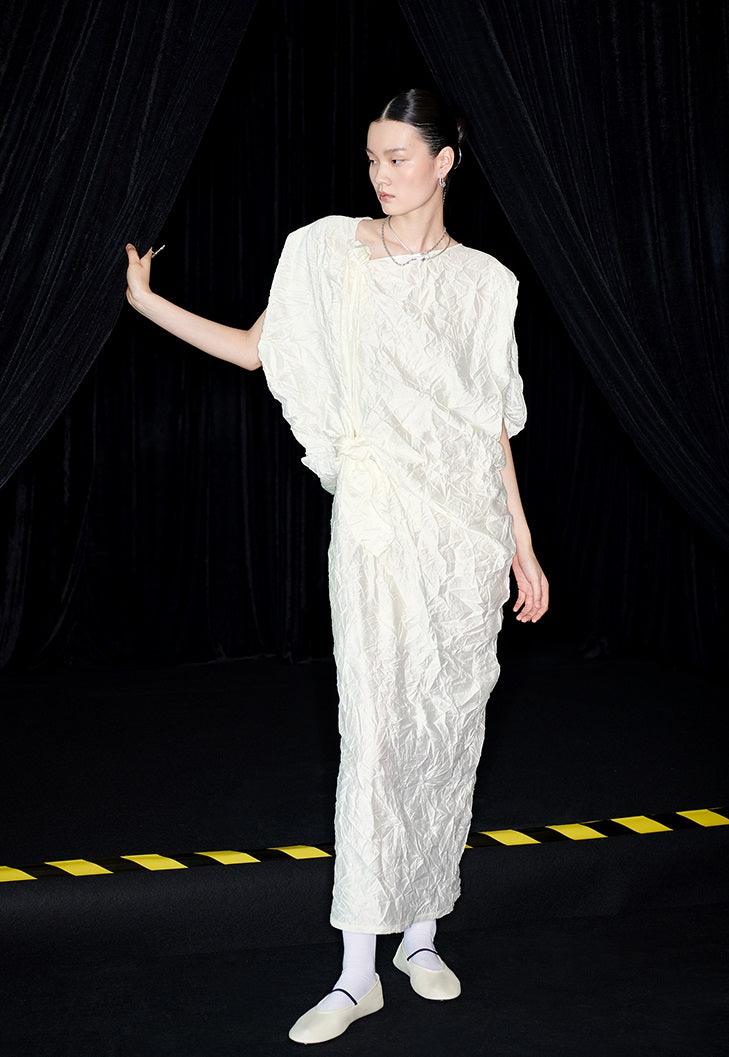 Elevate your style with M essential Mackay designer brand dress. Featuring a pressed pleated design and an irregular cut, this dress is both classy and comfortable. Perfect for any occasion, it will make you stand out with its unique and sophisticated look.