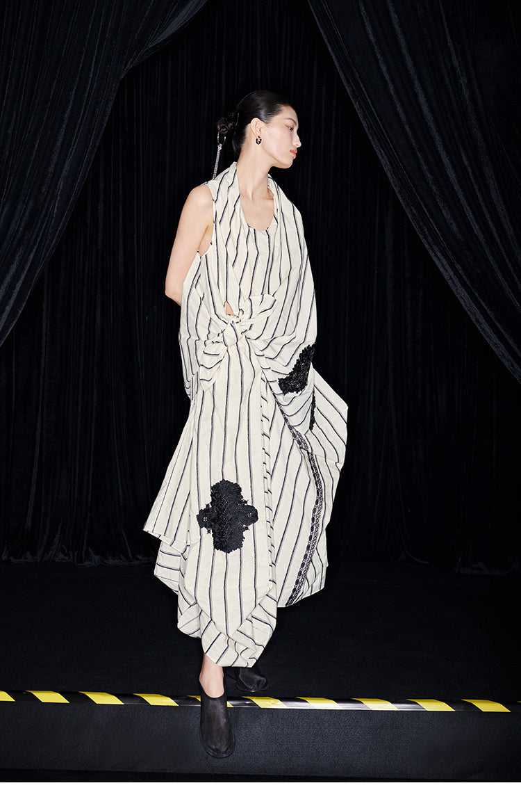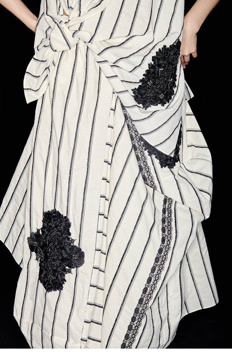 M essential Mackay designer yarn-dyed paismi embroidered knot top skirt set - Zen.