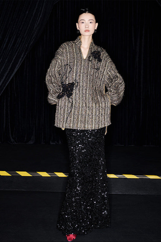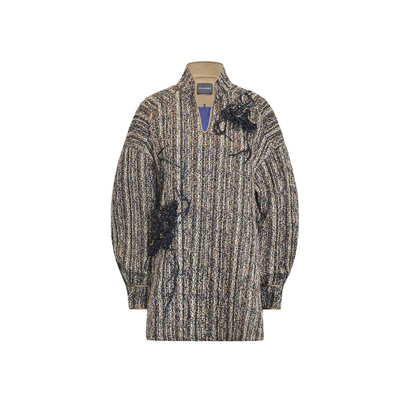 Elevate your style and conquer the unknown with our M essential Mackay designer top! Made from luxurious fabric and adorned with wrought iron orchid feathers and beads, this top is the epitome of class. Be bold and make a statement with this Master piece.
