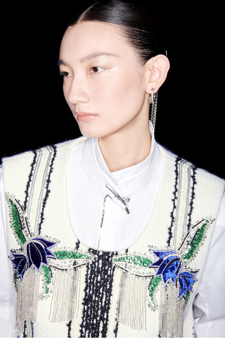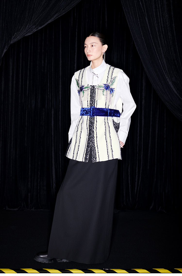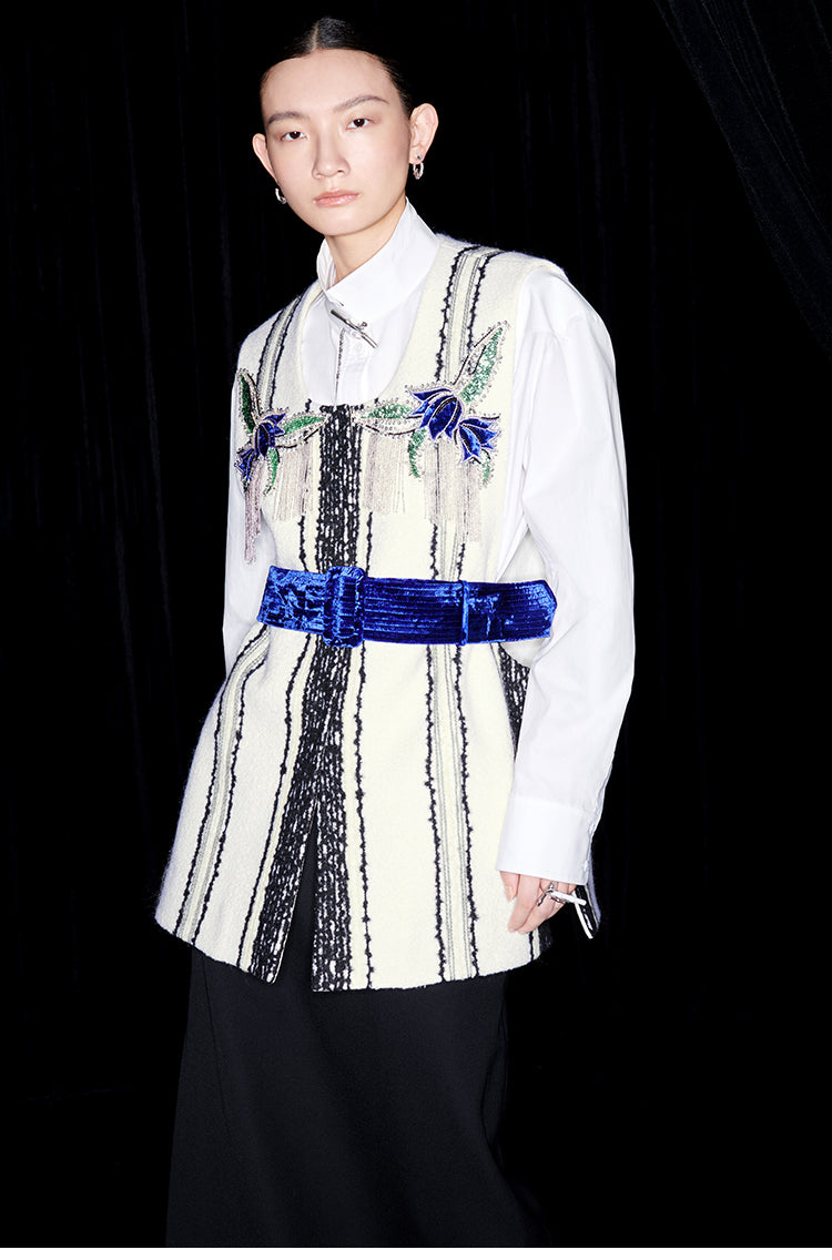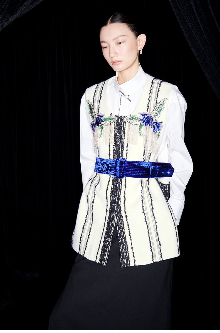 M essential Mackay designer fur stripe embroidered gilet skirt vest dress- Salumd