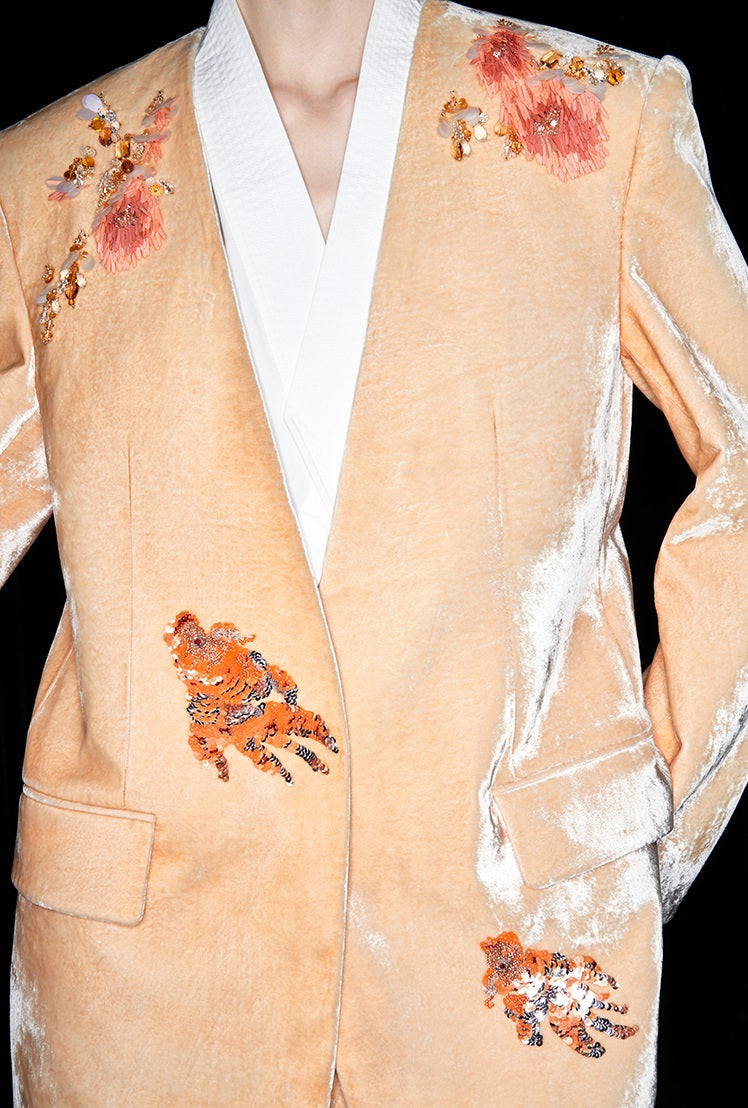 M essential Mackay designer Rulang velvet dahlia nail bead suit - DUAO.