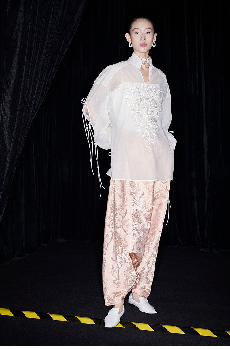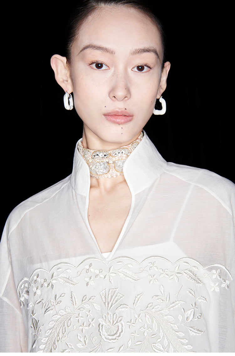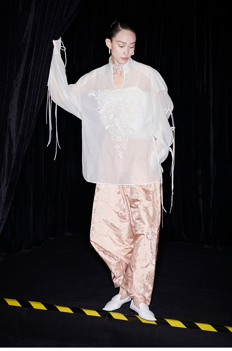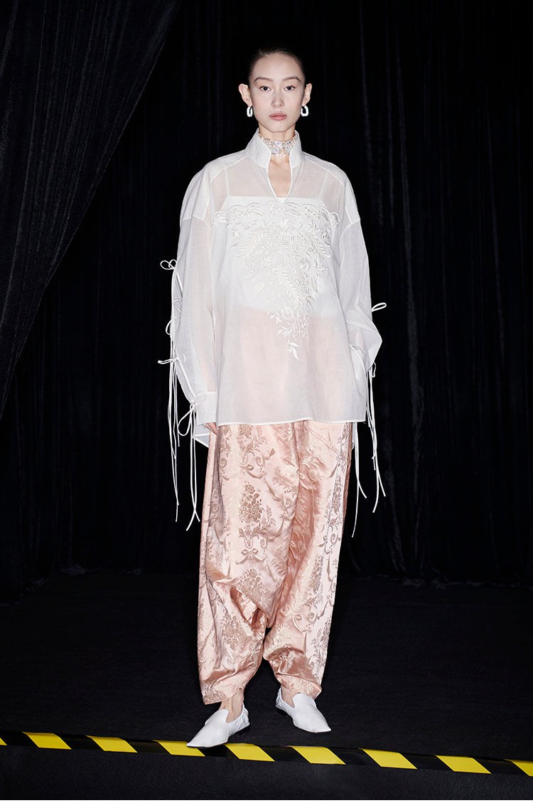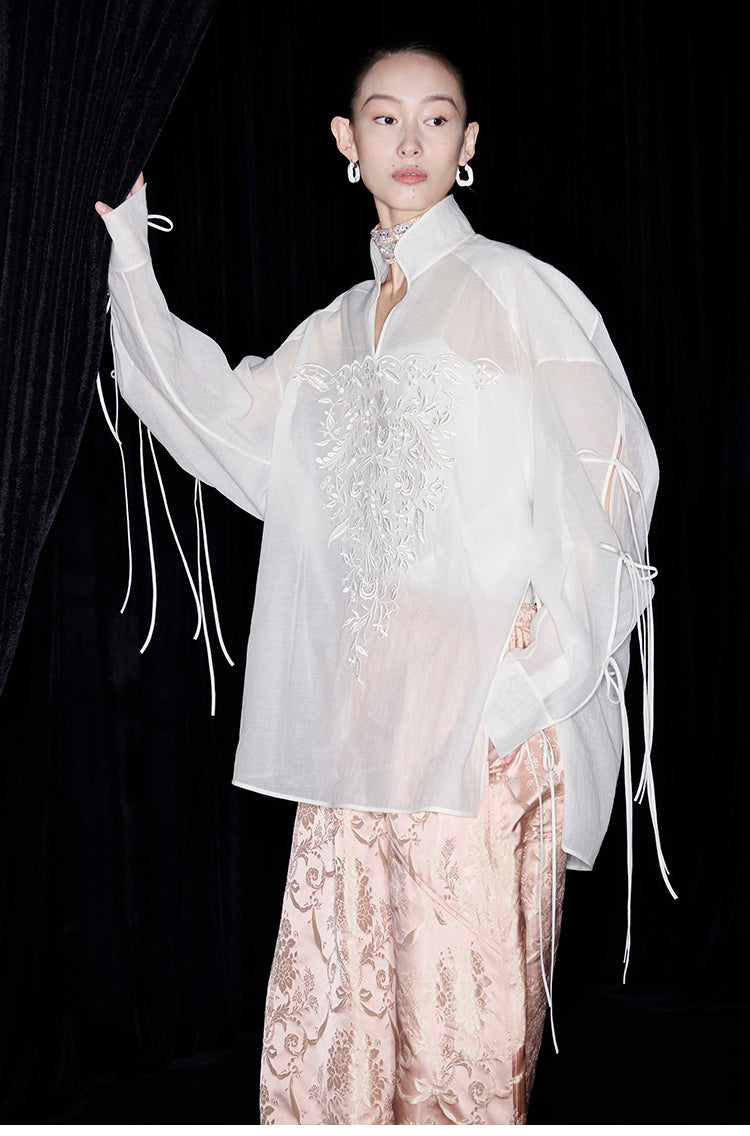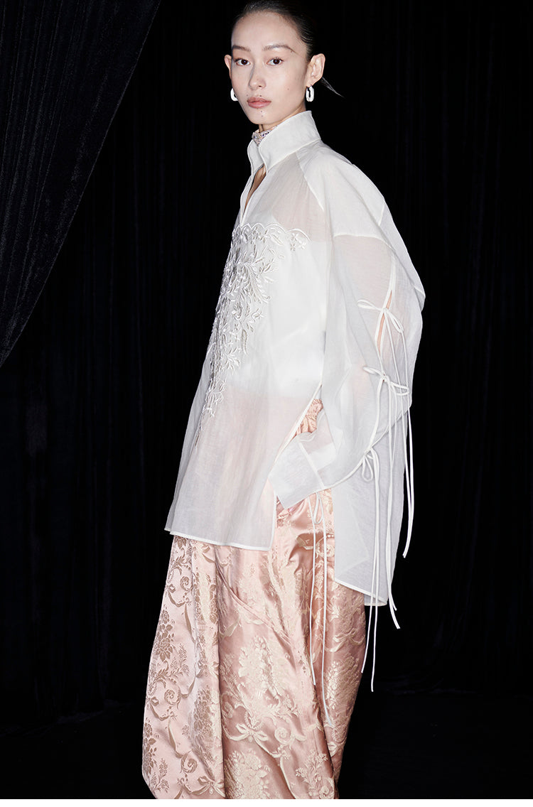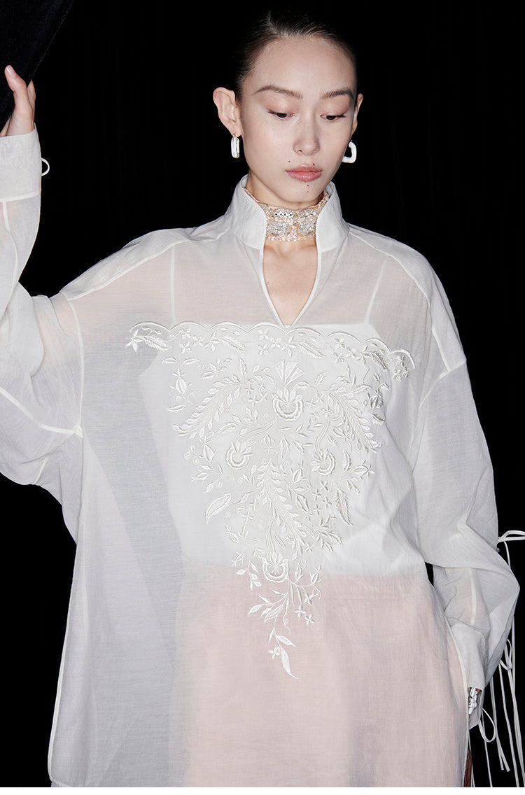 M essential Mackay designer soft-paper pale overshirt with pavement embroidery - serious.