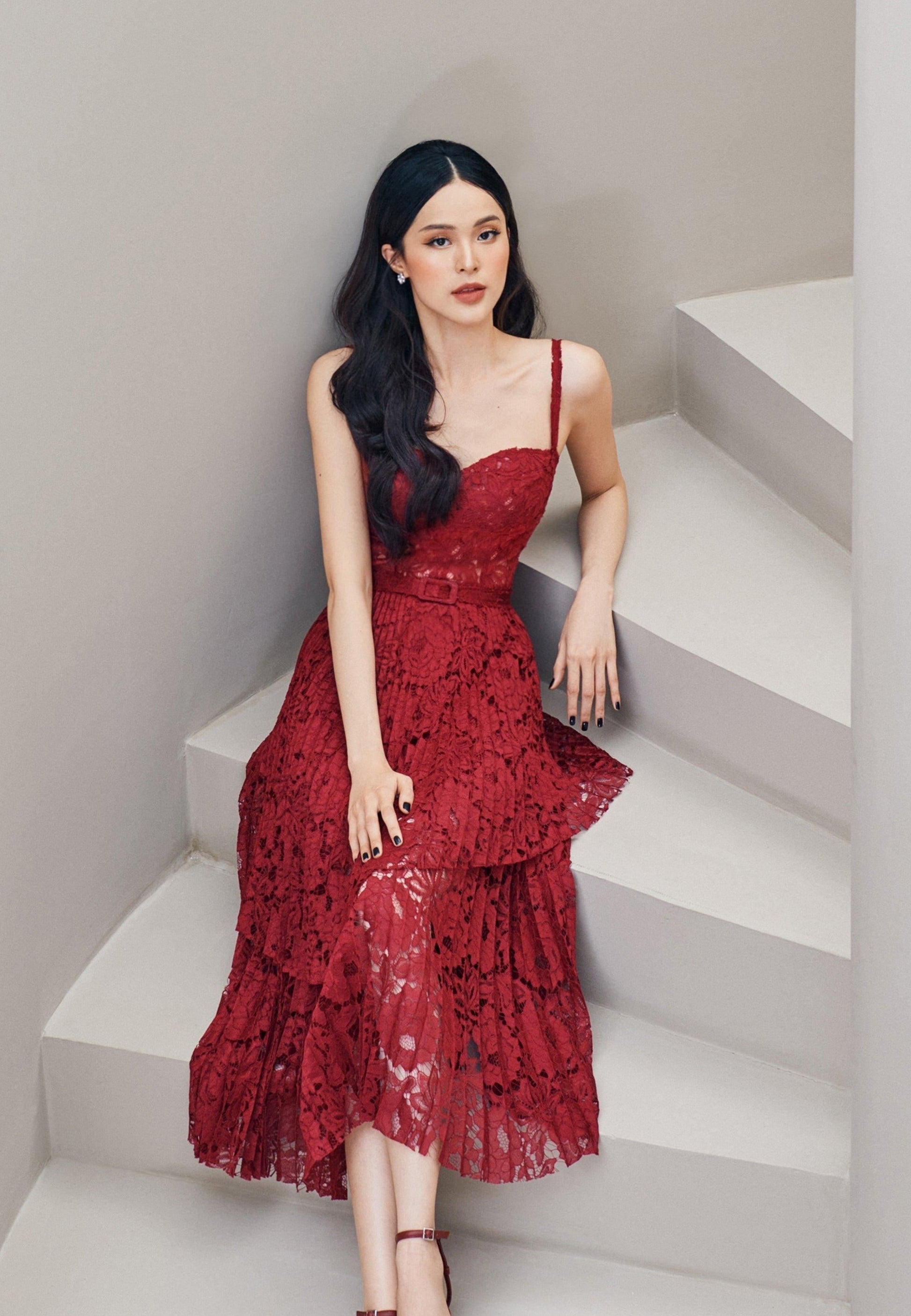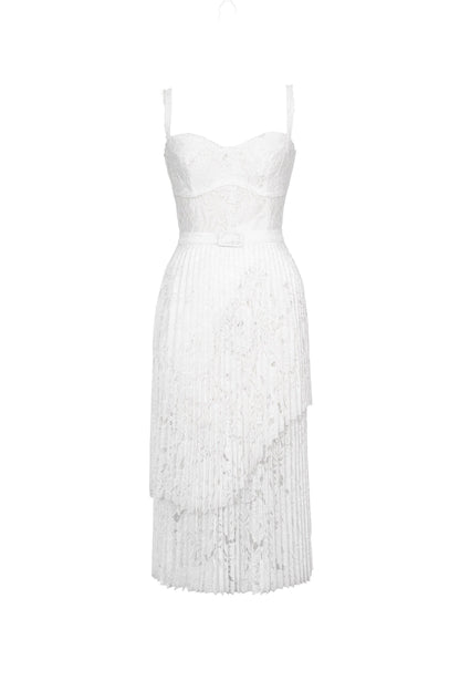 MARILÈNE PLEATED LACE MIDI DRESS-THERESA