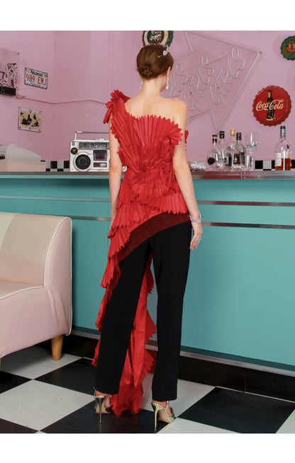 Statement limited edition one shoulder pleated flower banquet partY elegant cocktail red blouse dress - India