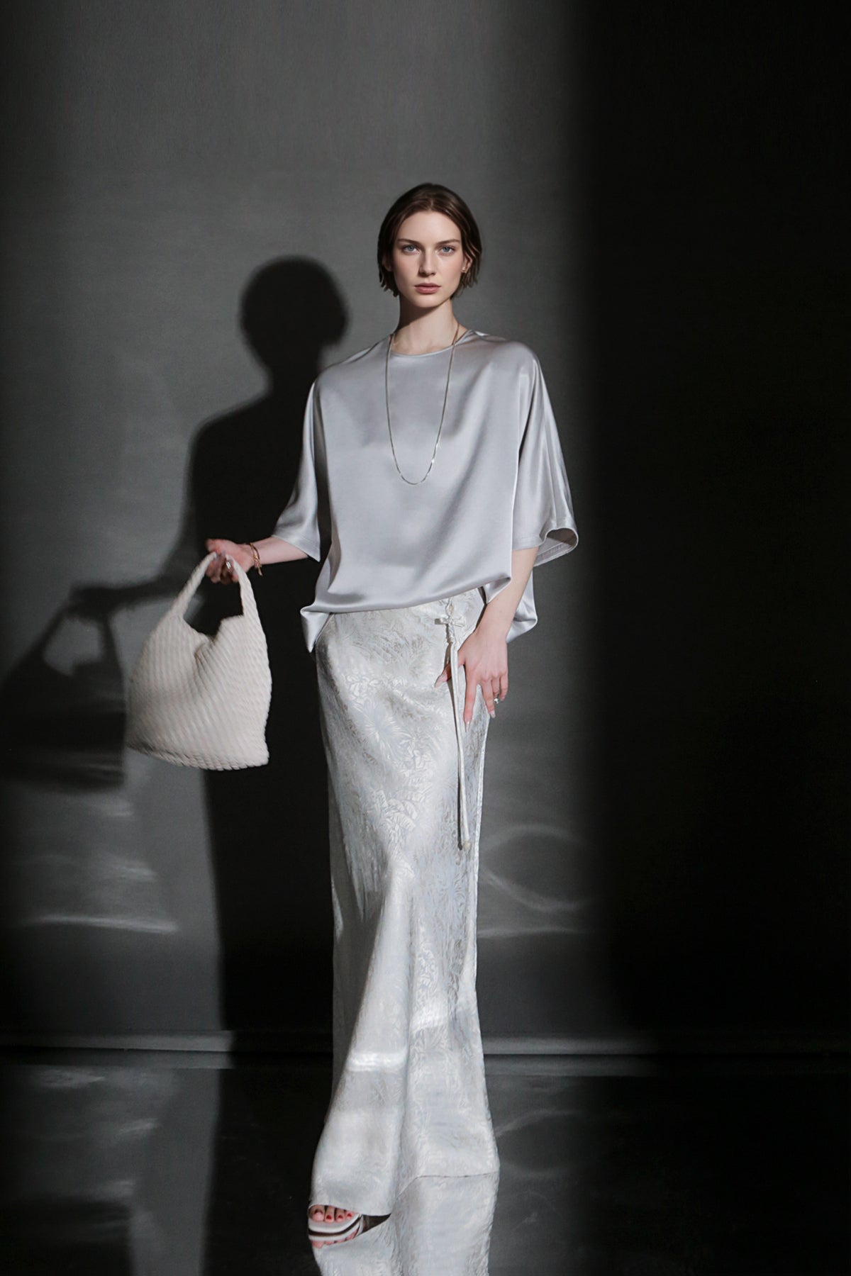 PIAOIN light luxury acetate satin glossy mid sleeve body shirt - CHARLOTTE