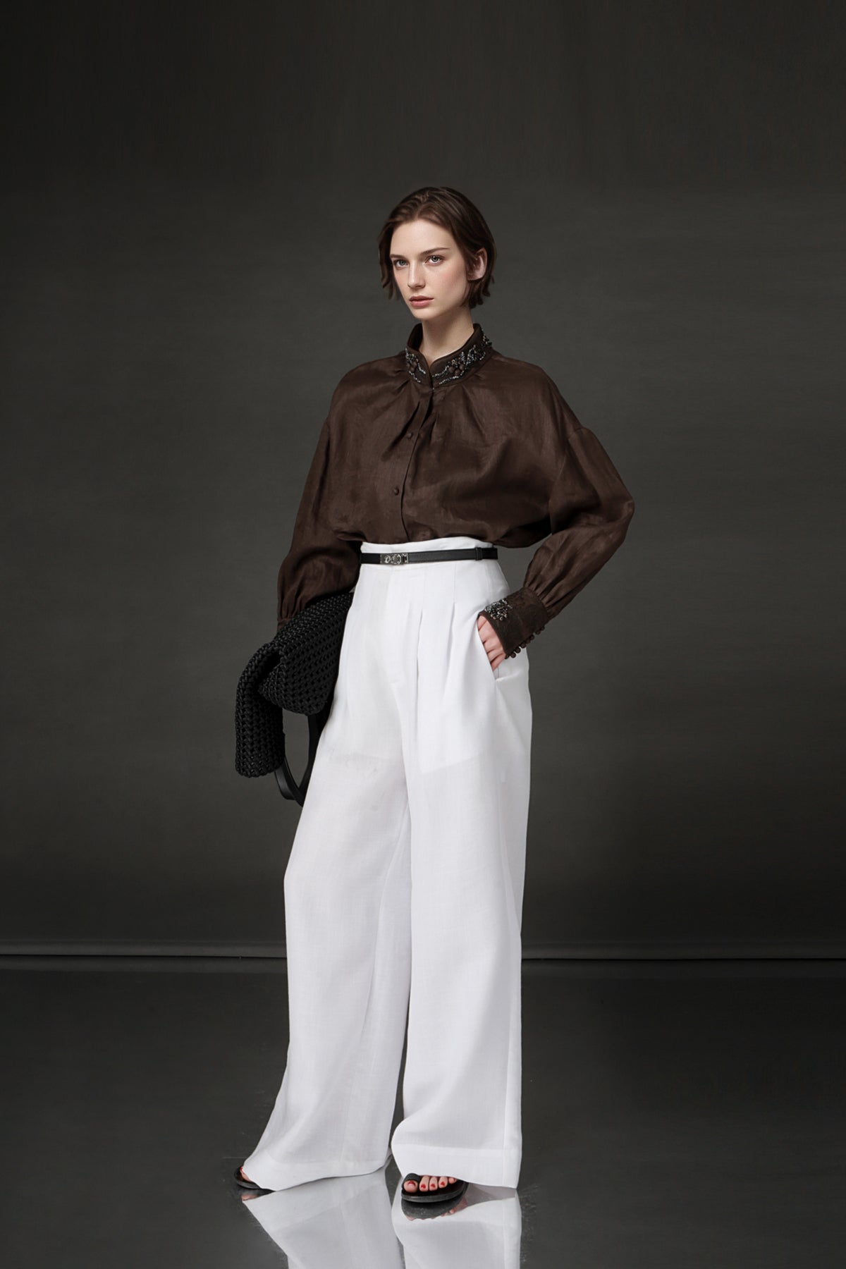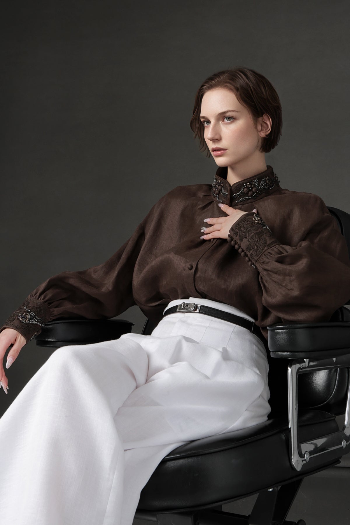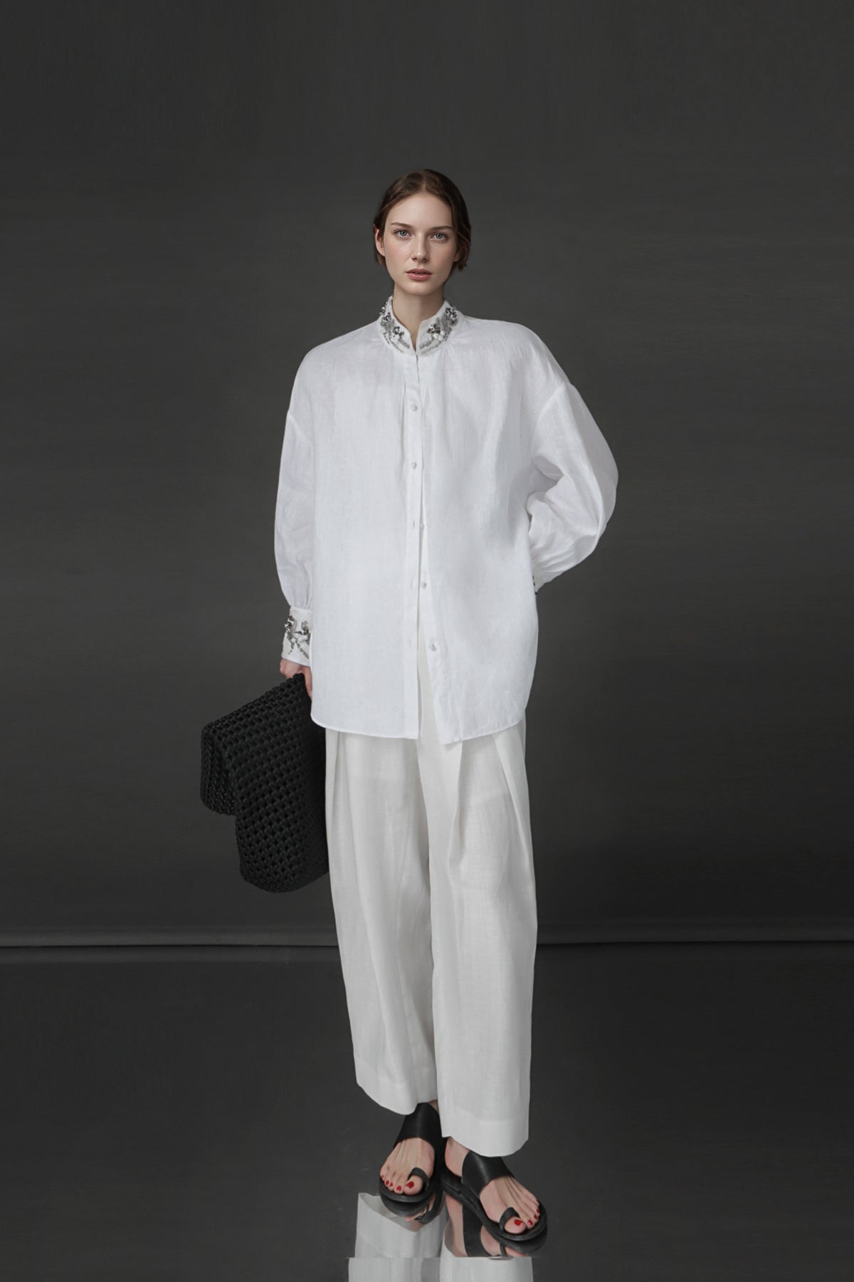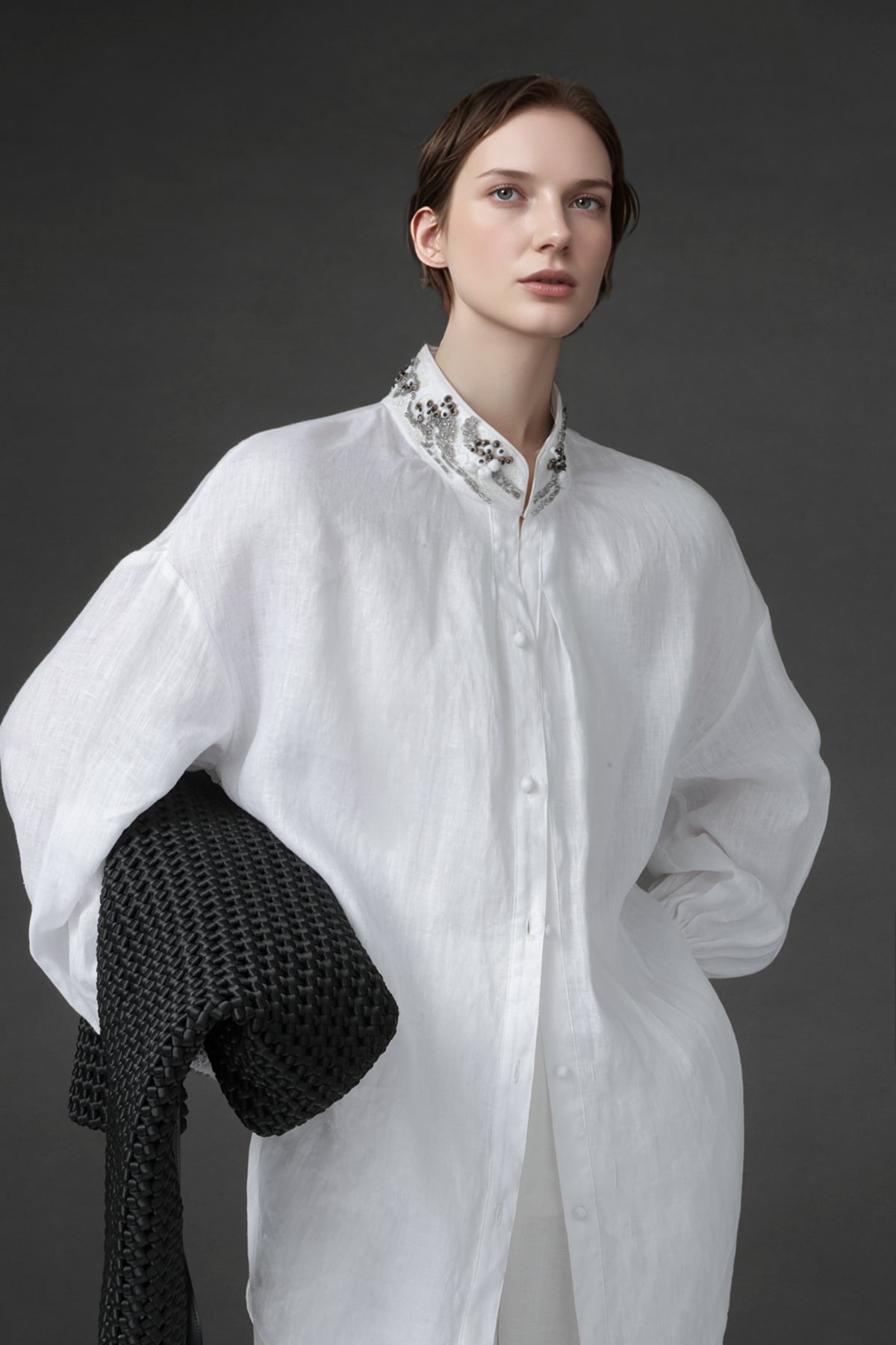 PIAOIN luxury vintage beaded design handmade custom shirt-BEATRICE.