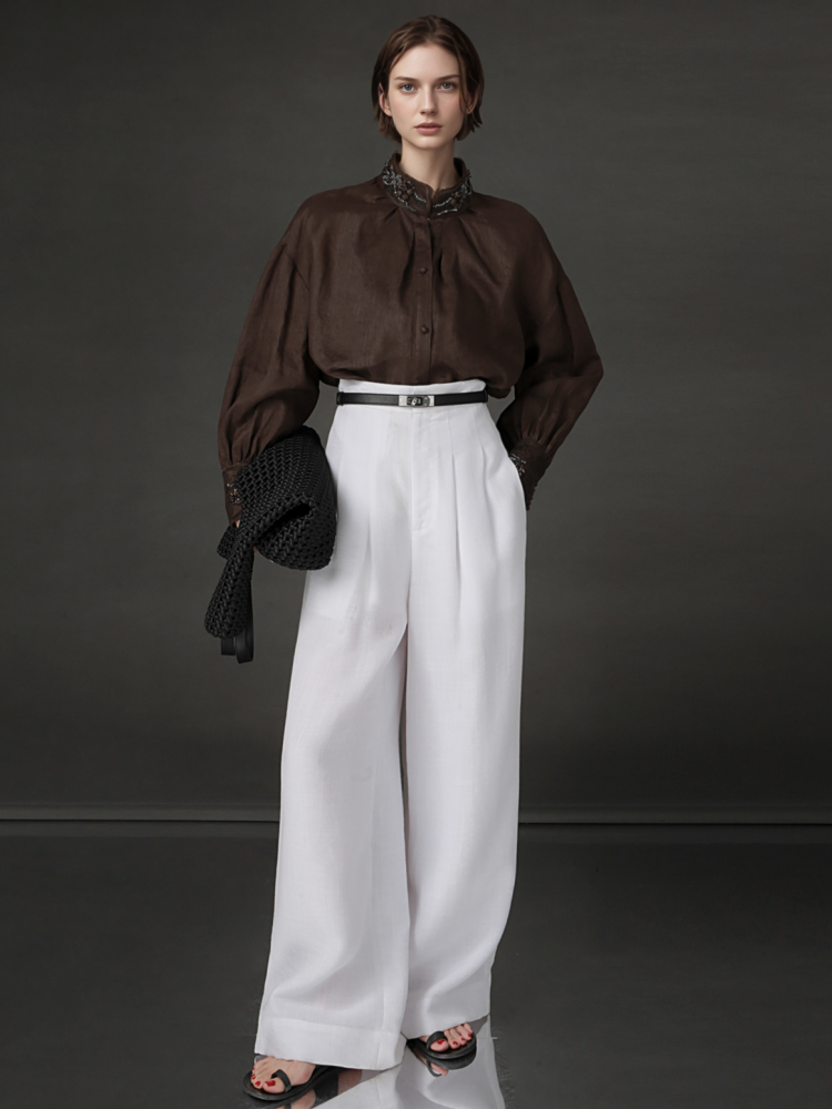 Elevate your wardrobe with this bold and chic PIAOIN luxury vintage beaded shirt. Handmade with custom linen, this refreshing heavy industry piece exudes both style and comfort. Make a statement this spring with the unique beaded design.