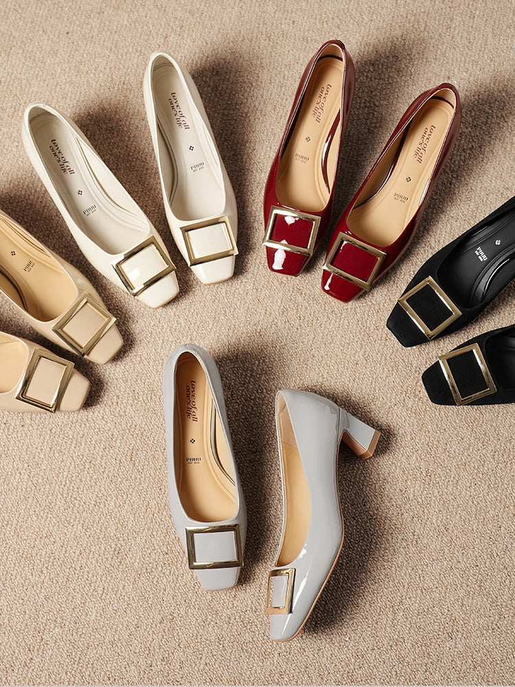 Pjjuu French r Square Toe v Block Heels - EASY