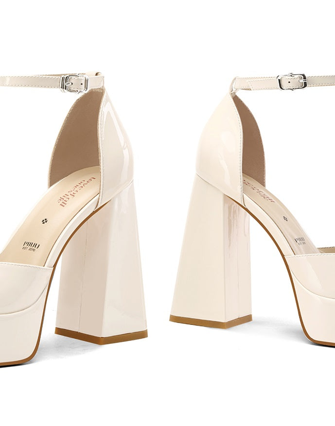 These beautiful Pjjuu Mary Jane White Small Man Platform Bridal Shoes by BEAR add a touch of elegance to any wedding ensemble. Featuring a stylish platform design, these shoes provide extra height without sacrificing comfort. Perfect for the fashion-forward bride seeking both style and practicality.
