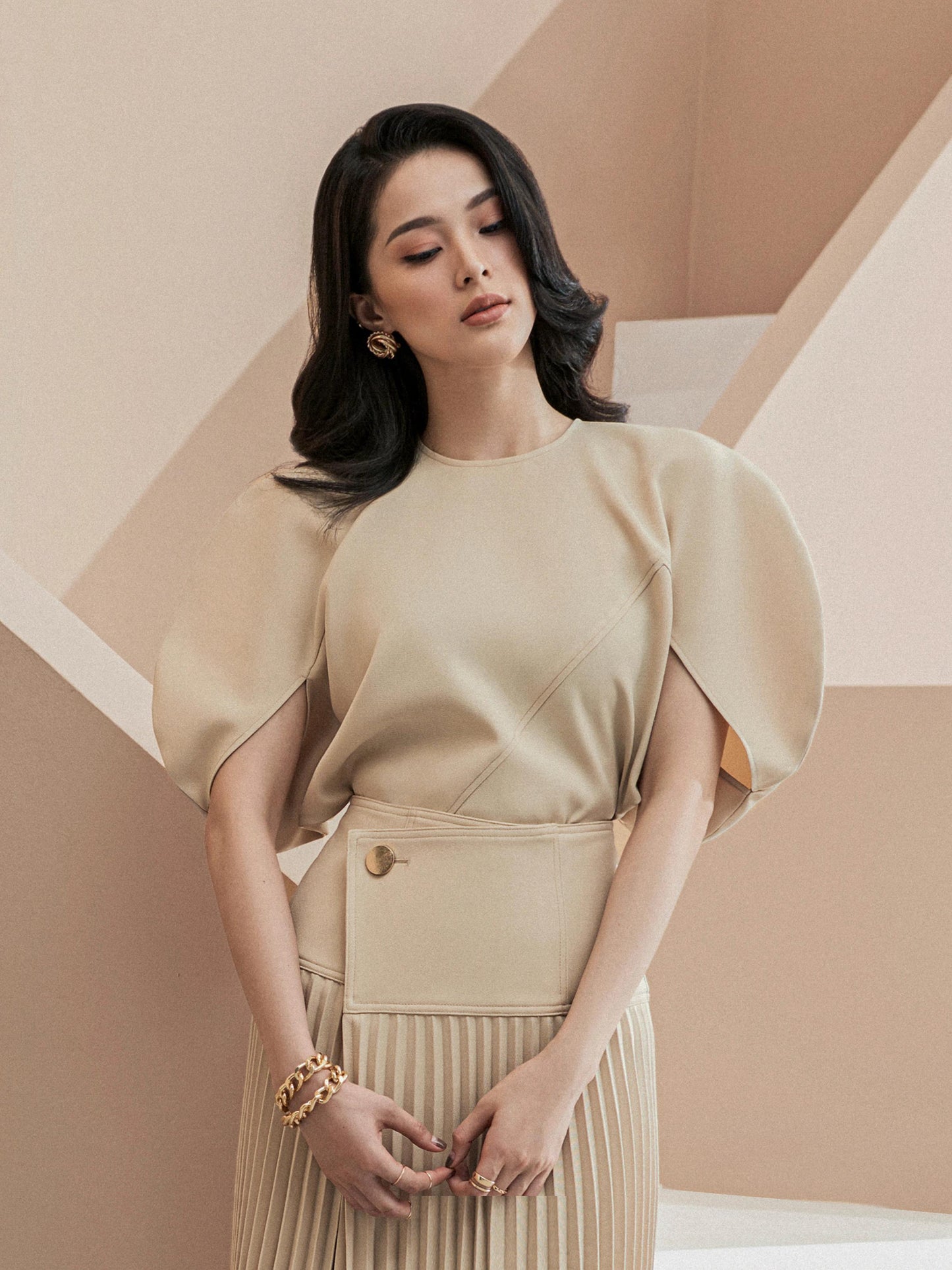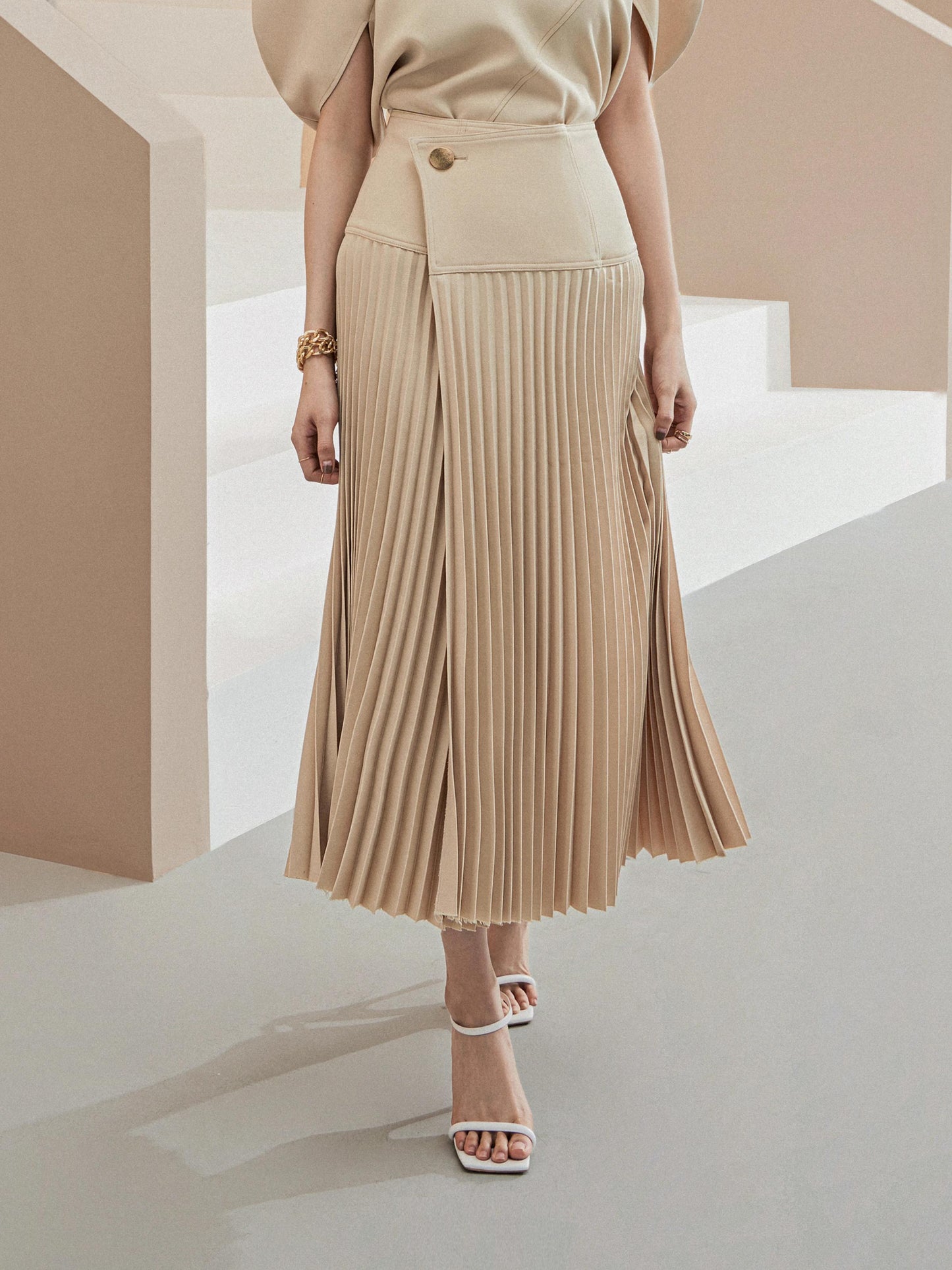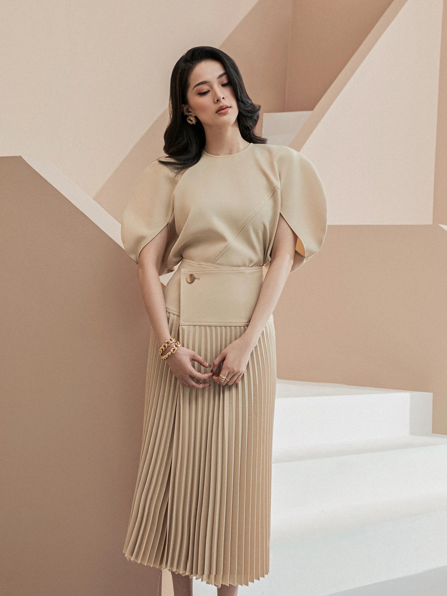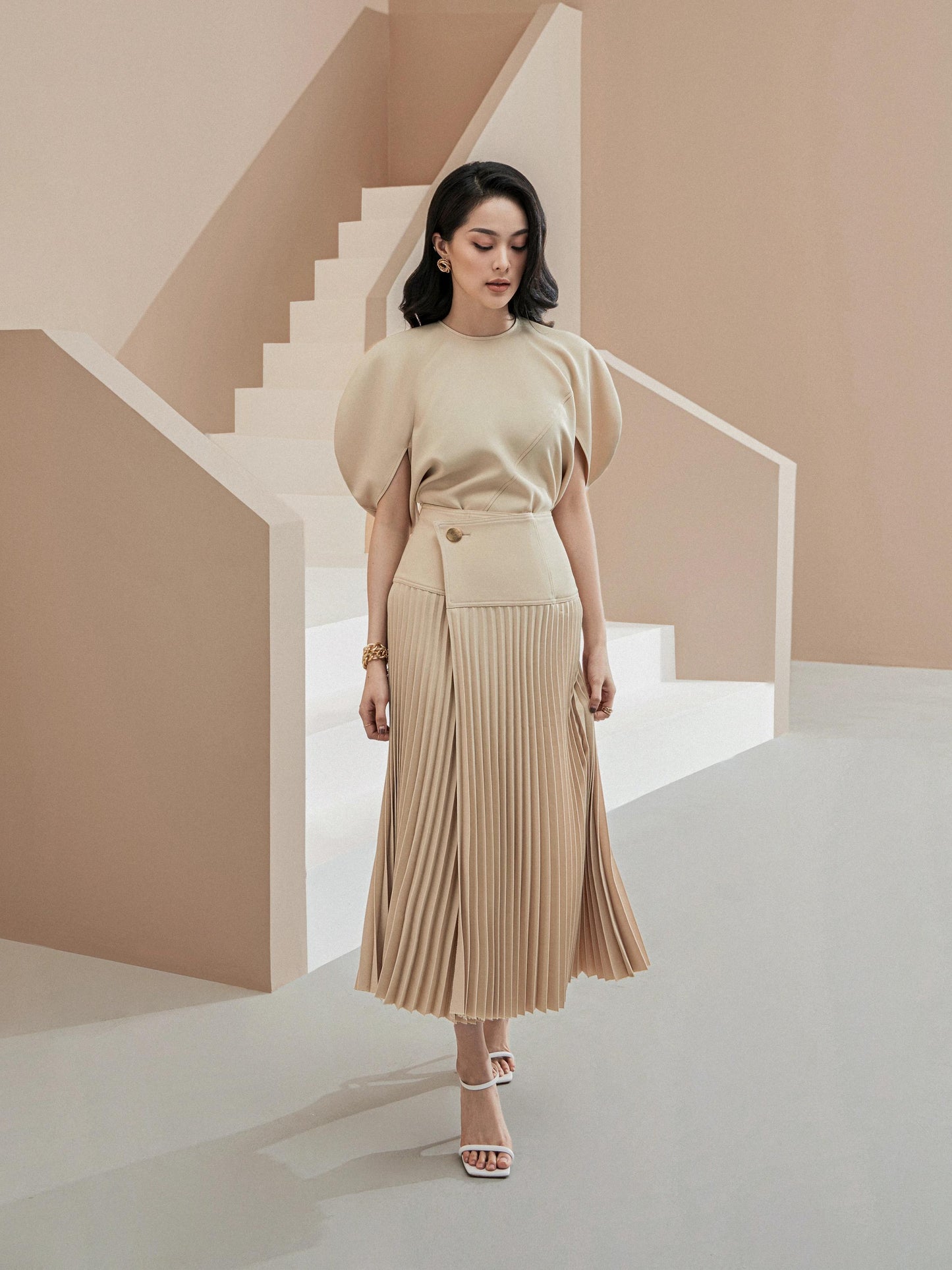 PLEATED MIDI SKIRT + COCOON SHAPED SLEEVE BLOUSE - CELINE