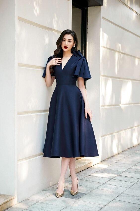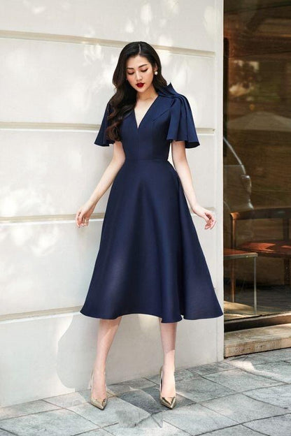 Raphaelle pleated shoulder midi blue dress - Josi