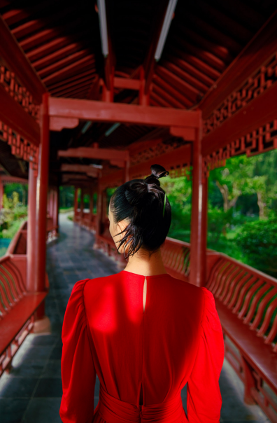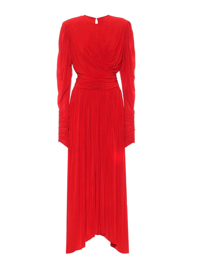 Red Pleated retro long-sleeved irregular skirt dress- Ctegoria