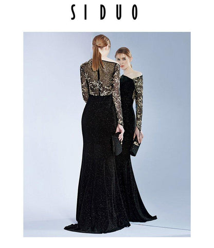 Siduo banquet black elegant evening dress gown - Sola