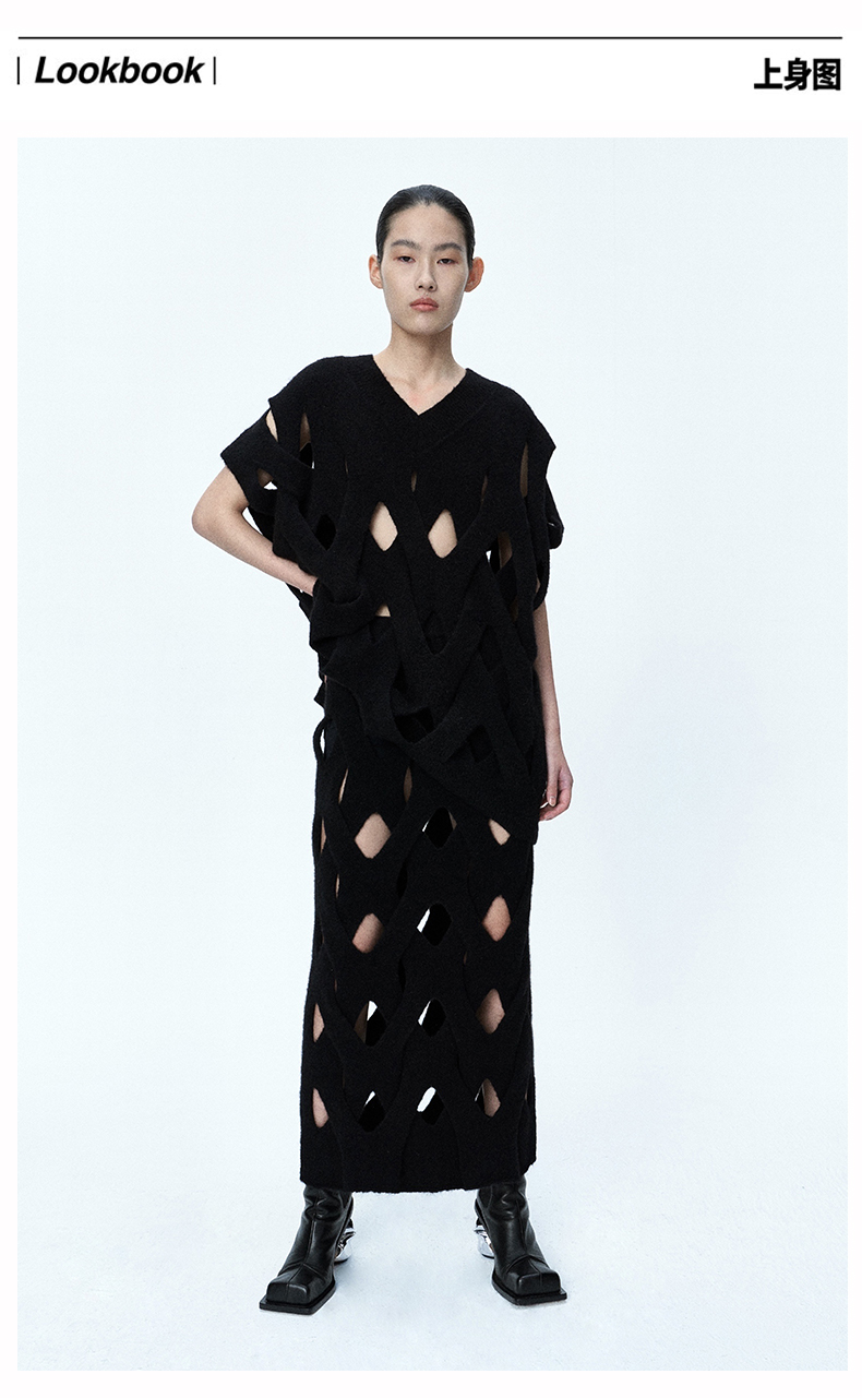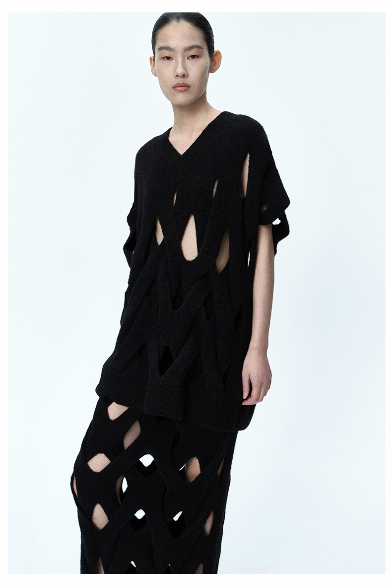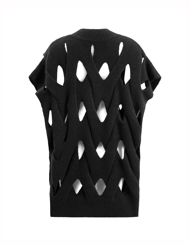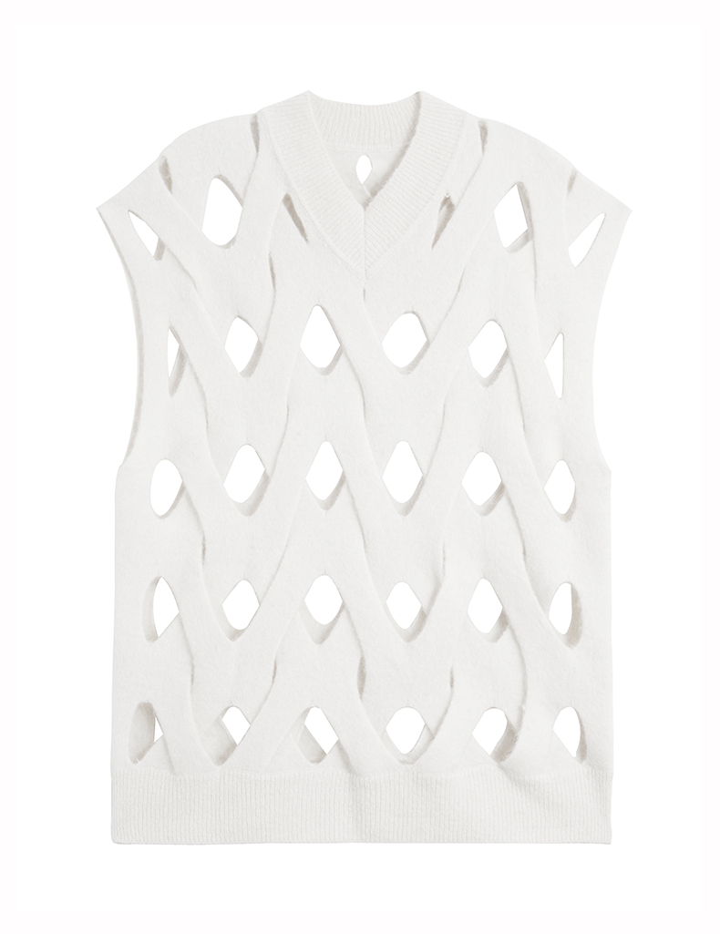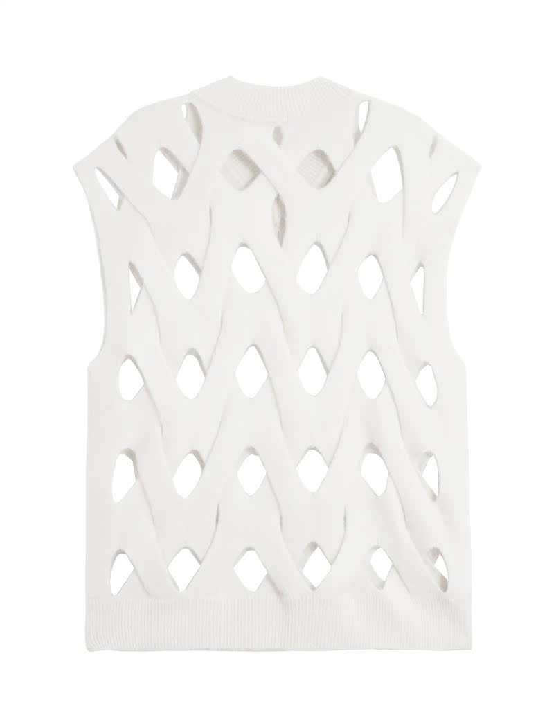 The MAYALI fall/winter staggered openwork intarsia sleeveless vest top-Misi