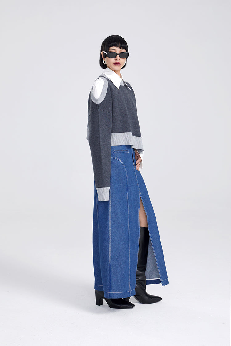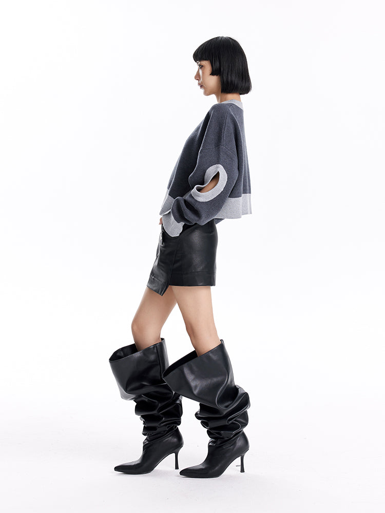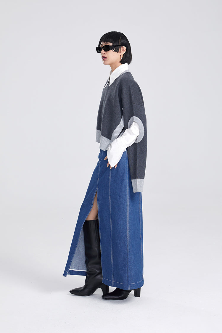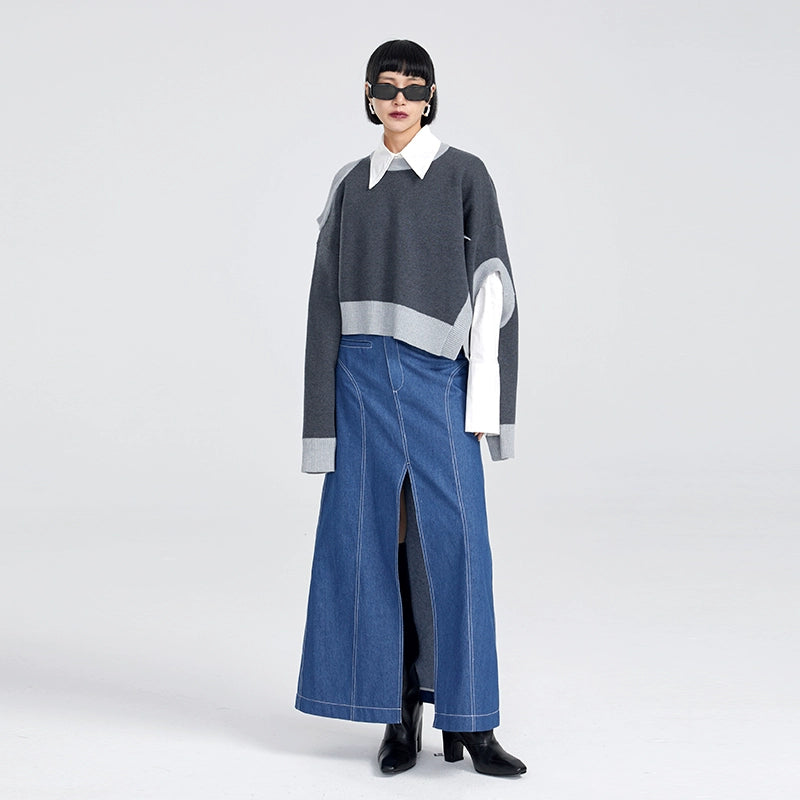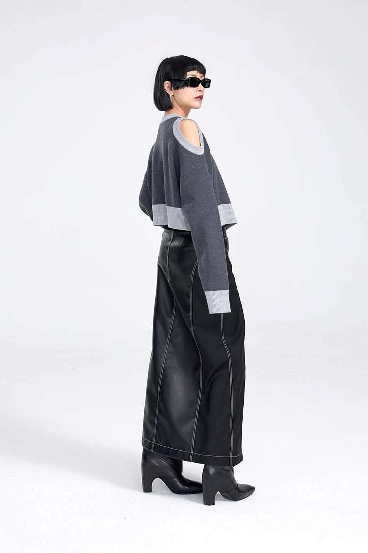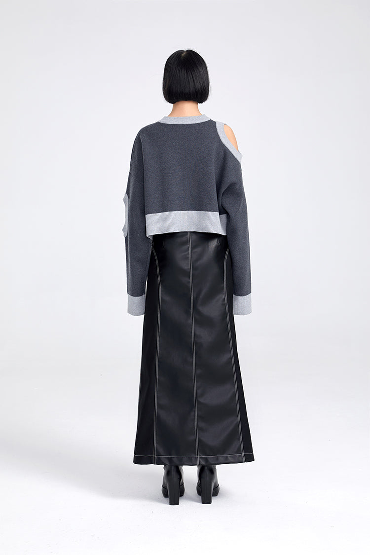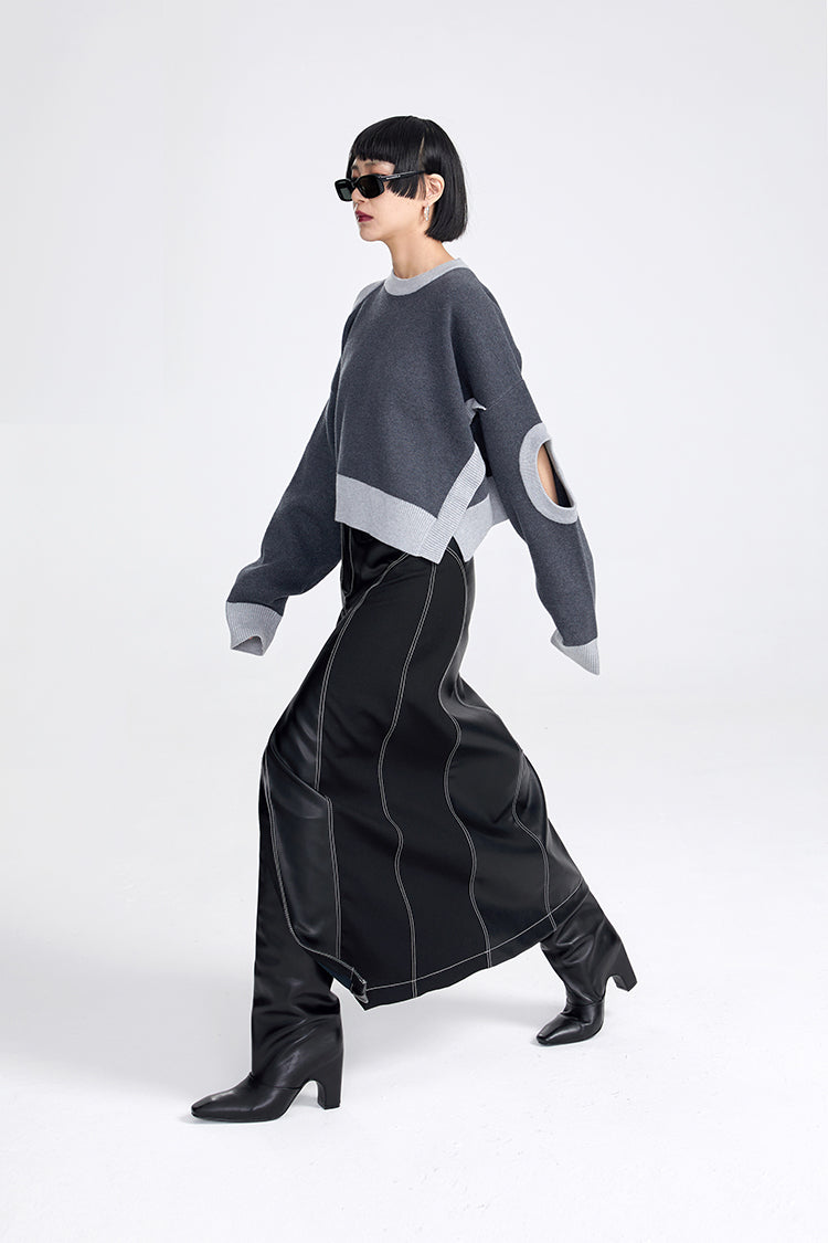 TINY IN women's loose dropped cut-out short sweater-MIE