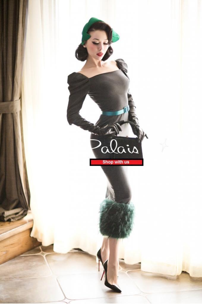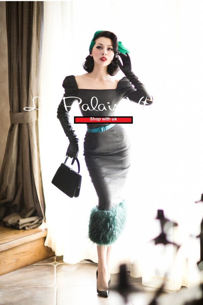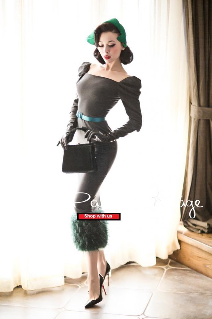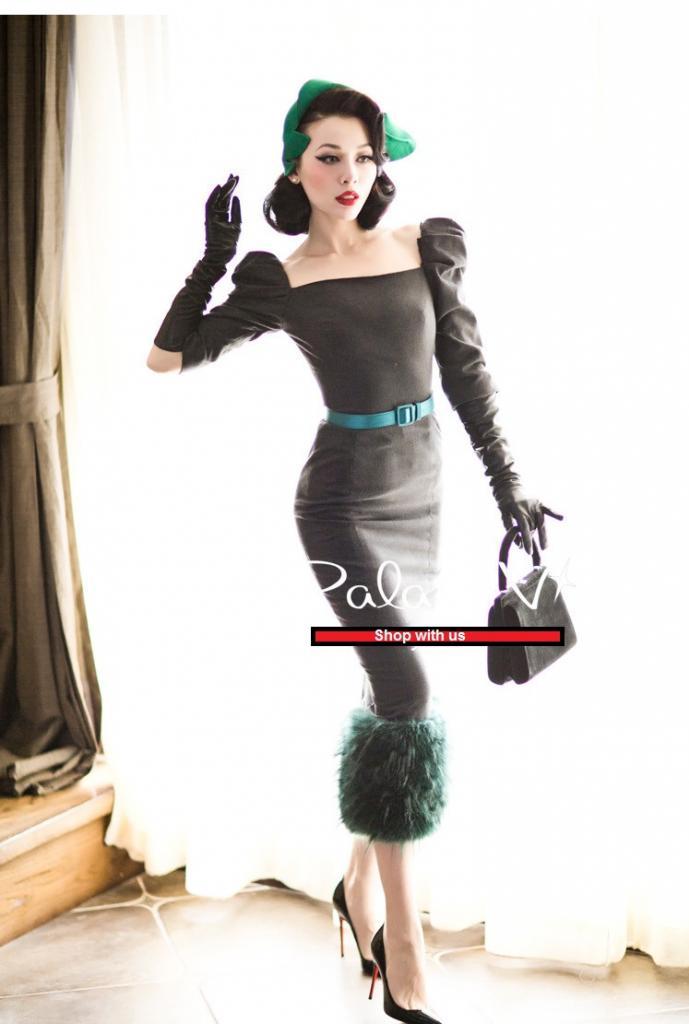 Vintage 50s pin up retro stitching woolen Pencil dress- Jenny.