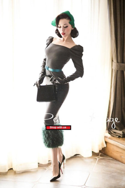 This Vintage 50s pin-up style pencil dress, crafted from woolen fabric with retro stitching, offers a timeless silhouette that flatters the figure. Its classic design combines elegance with comfort, making it ideal for those who appreciate authentic mid-century fashion. Perfect for special occasions or adding vintage charm to your wardrobe, this dress embodies sophistication and enduring style.