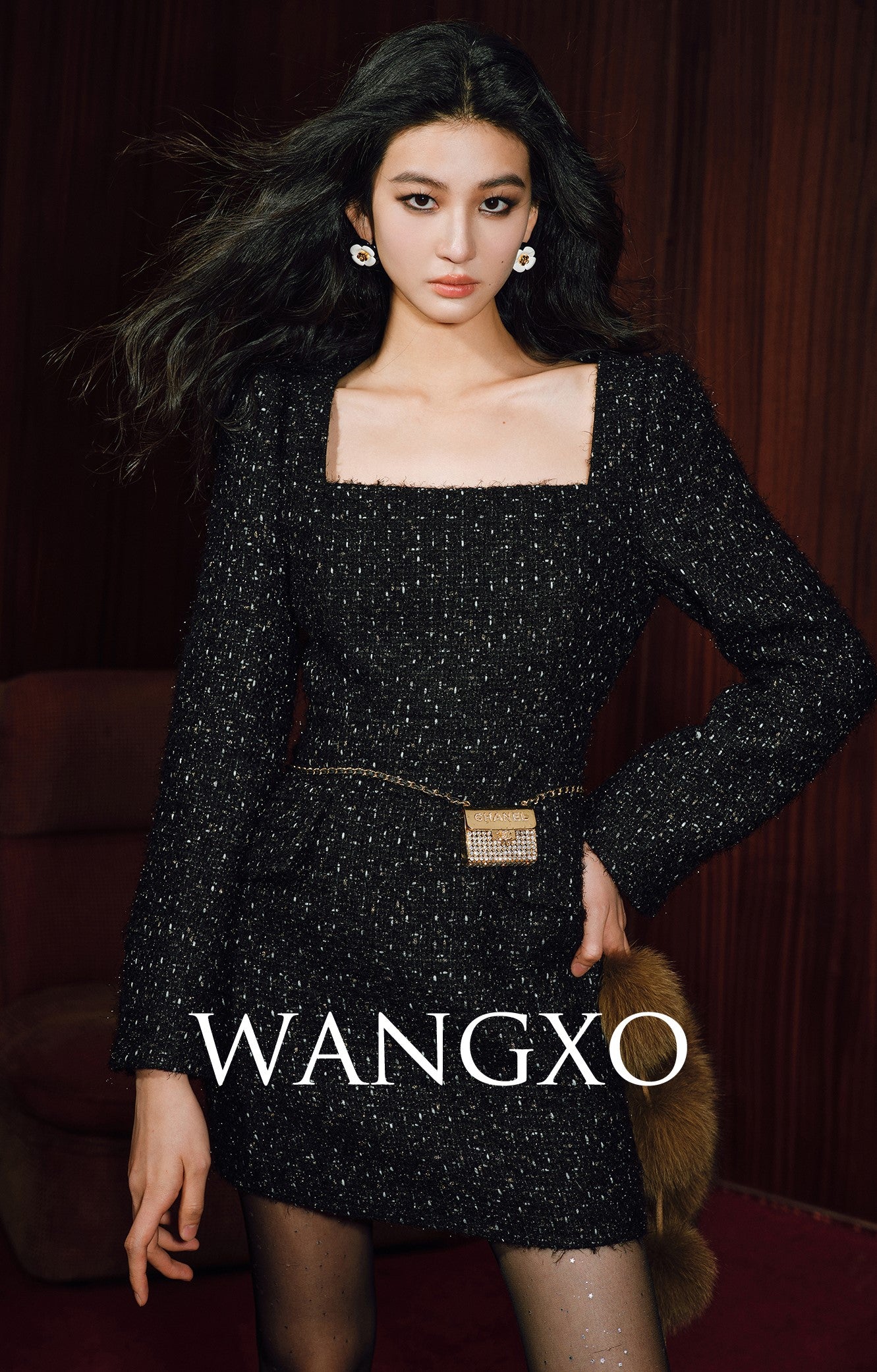 Elevate your wardrobe with the WANGXO Battle-Robe Level Luxury Tweed Dress. Crafted from shiny textured tweed inspired by classic CH designs, this elegant piece features a flattering square neckline and a defined waist for a sophisticated silhouette. Its refined, small fragrance detail adds a subtle touch of allure, making it perfect for occasions where style meets confidence. This dress embodies sexy elegance with expert tailoring and luxurious materials.