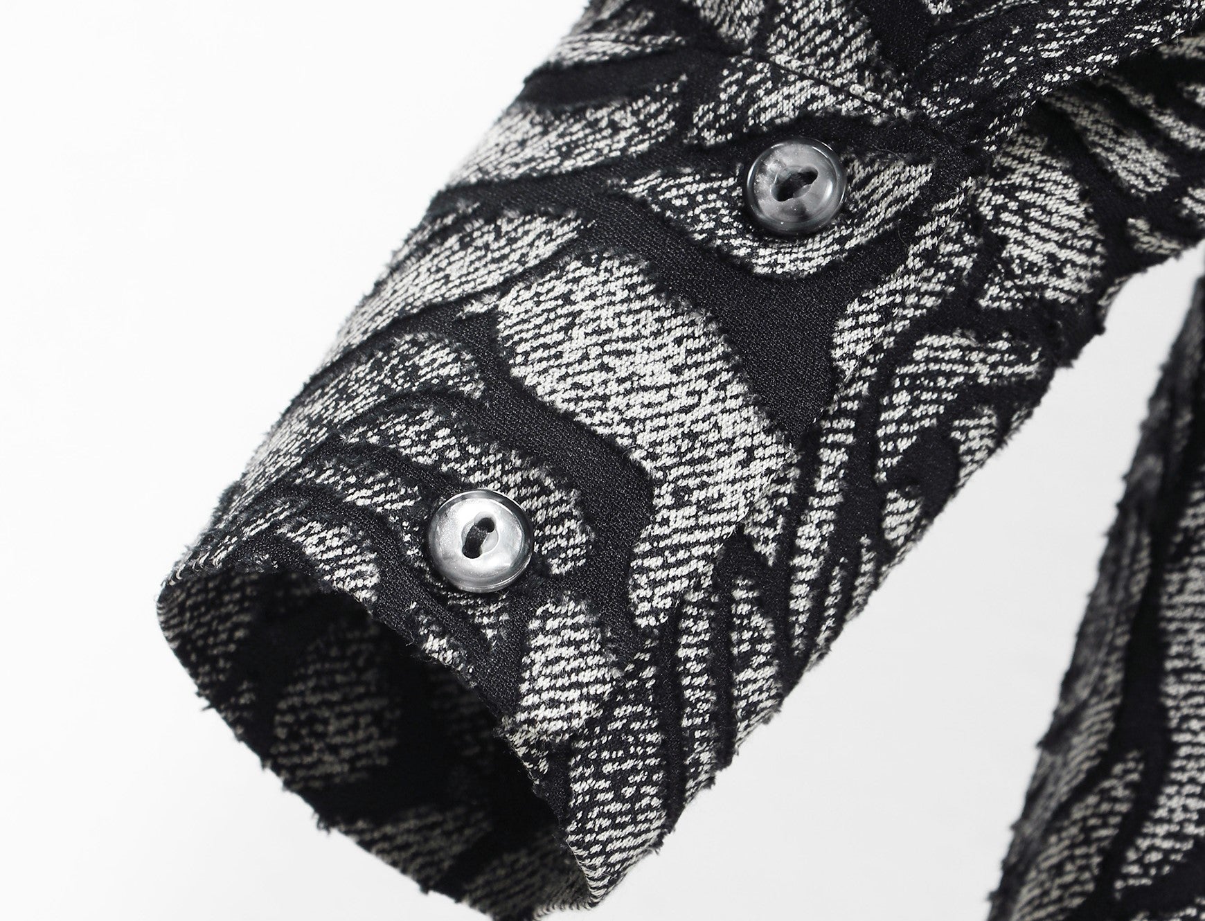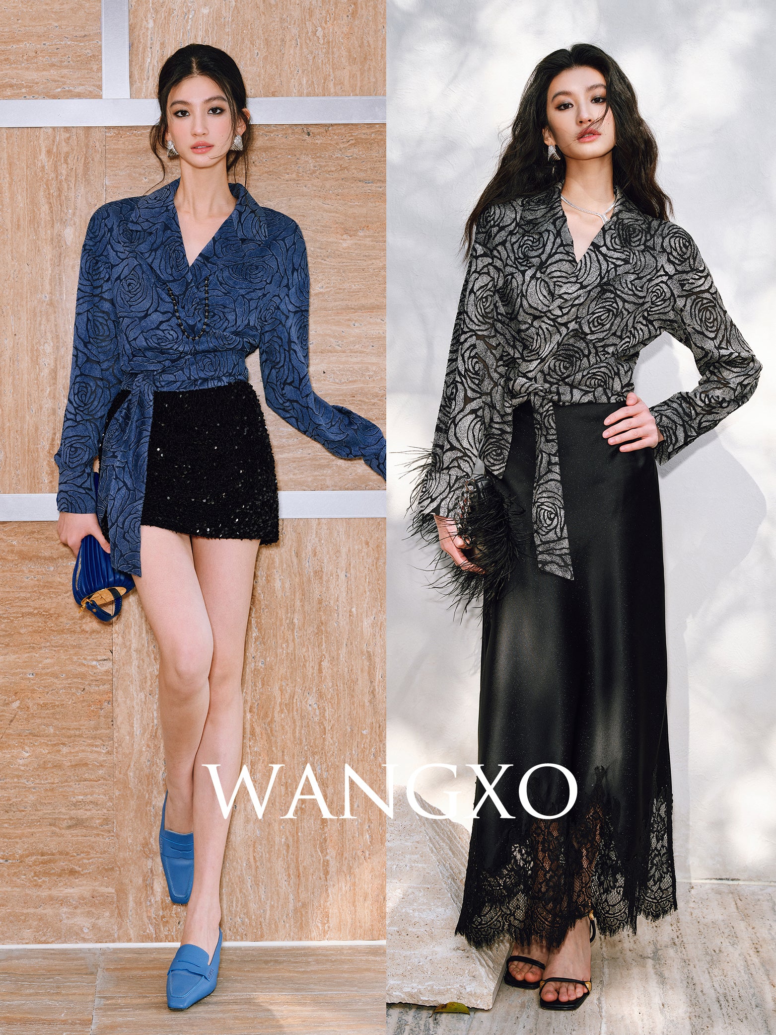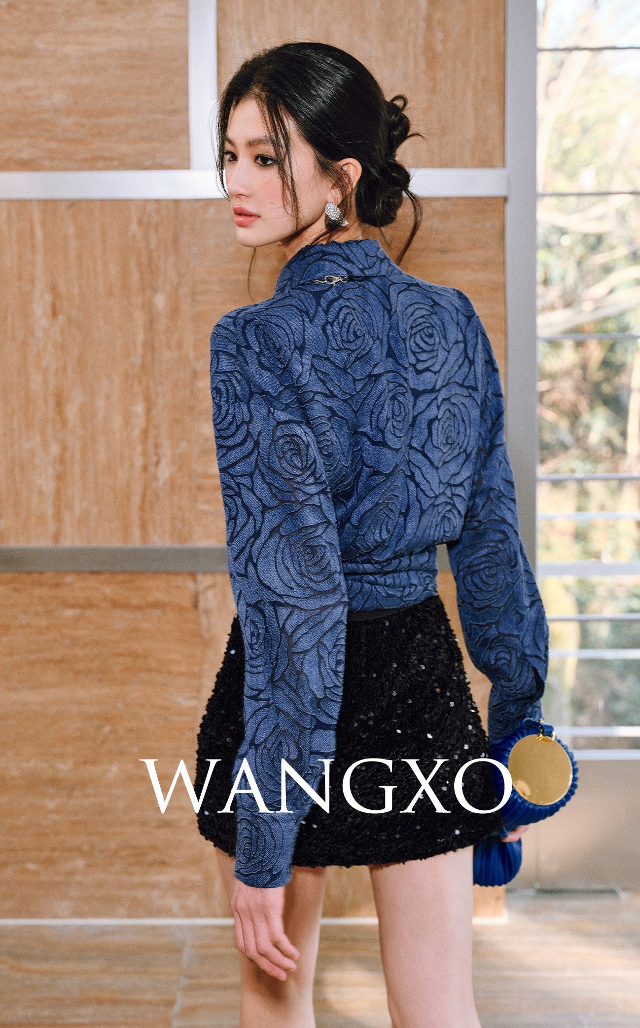 WANGXO | Rose Embossed Georgette with Cut Flowers Long Sleeve Cropped Shirt-SENA.