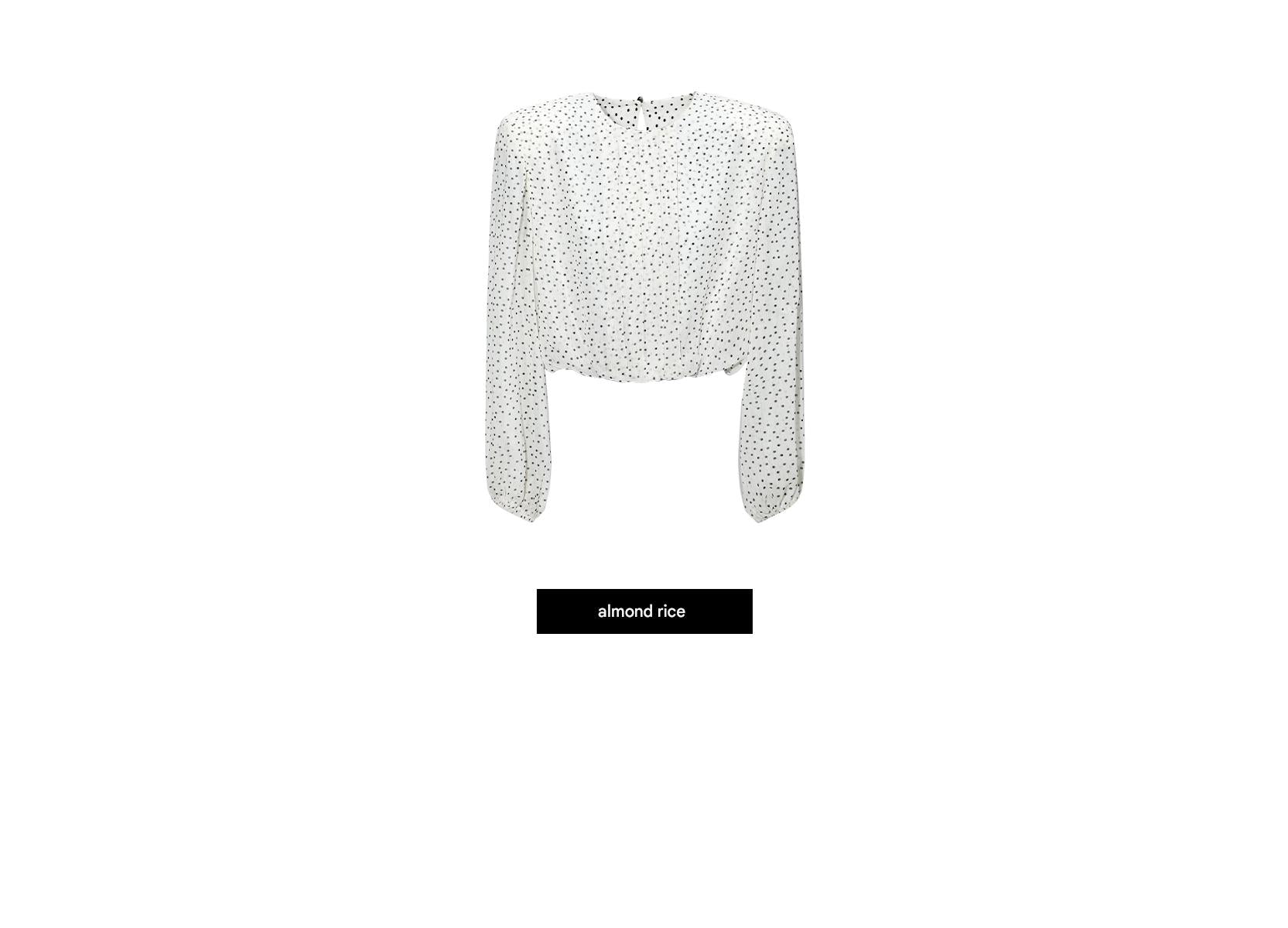 The WANGXO blouse embodies elegant vintage charm with its Riviera ripple chiffon fabric and distinctive custom velvet polka dot print. Featuring a retro French-inspired loose silhouette, this blouse offers a graceful drape and timeless sophistication. Ideal for those seeking refined style with a nod to classic fashion, it balances delicate texture and relaxed structure for versatile, enduring appeal.