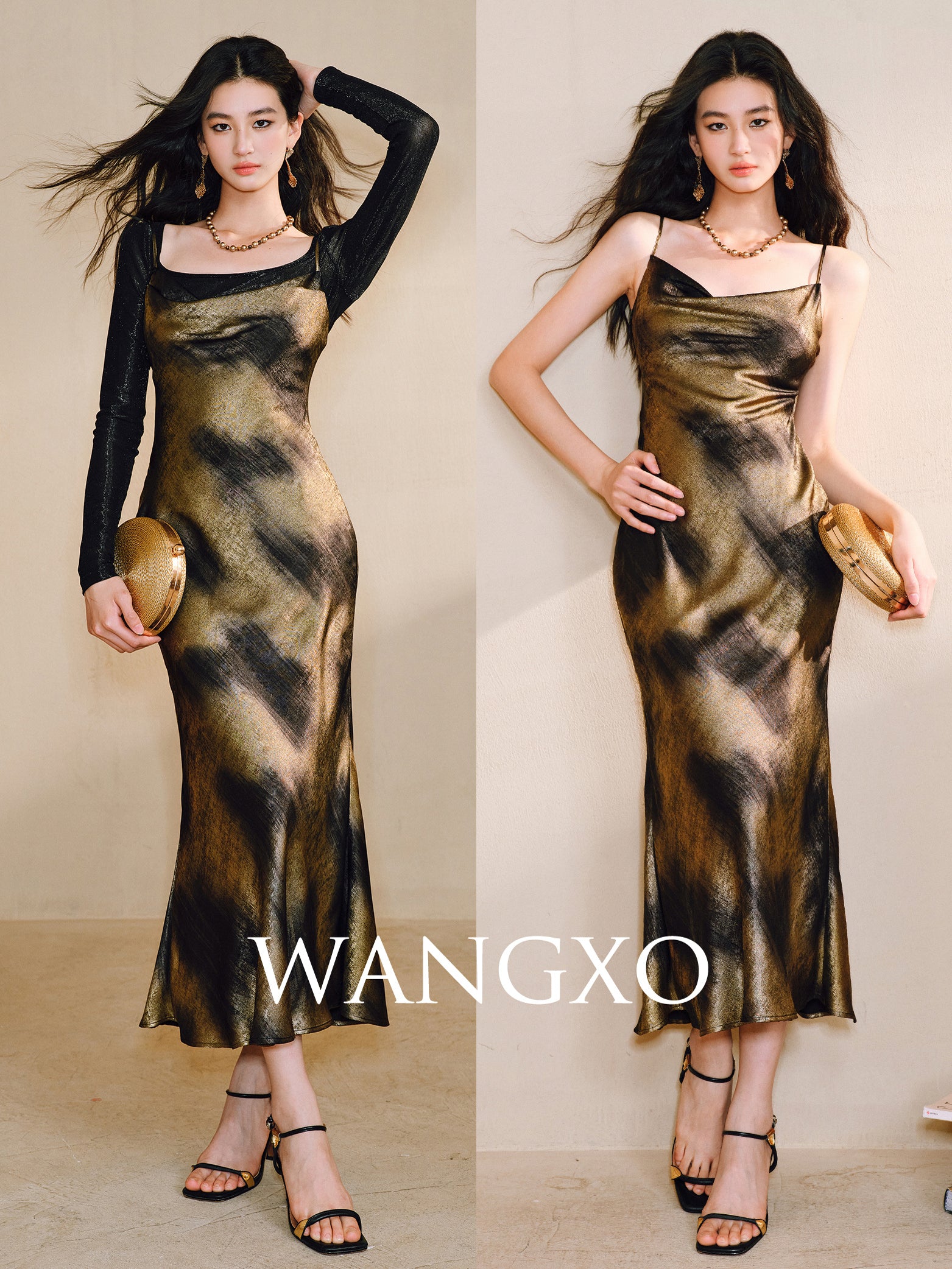 The WANGXO Satin Reverie Set combines a glossy oil-paint texture with refined tailoring, featuring a U-neck top and a swing-neck sundress. This elegant duo offers a smooth, lustrous finish that enhances silhouette flow while providing versatile sophistication, perfect for creating a polished, timeless look.