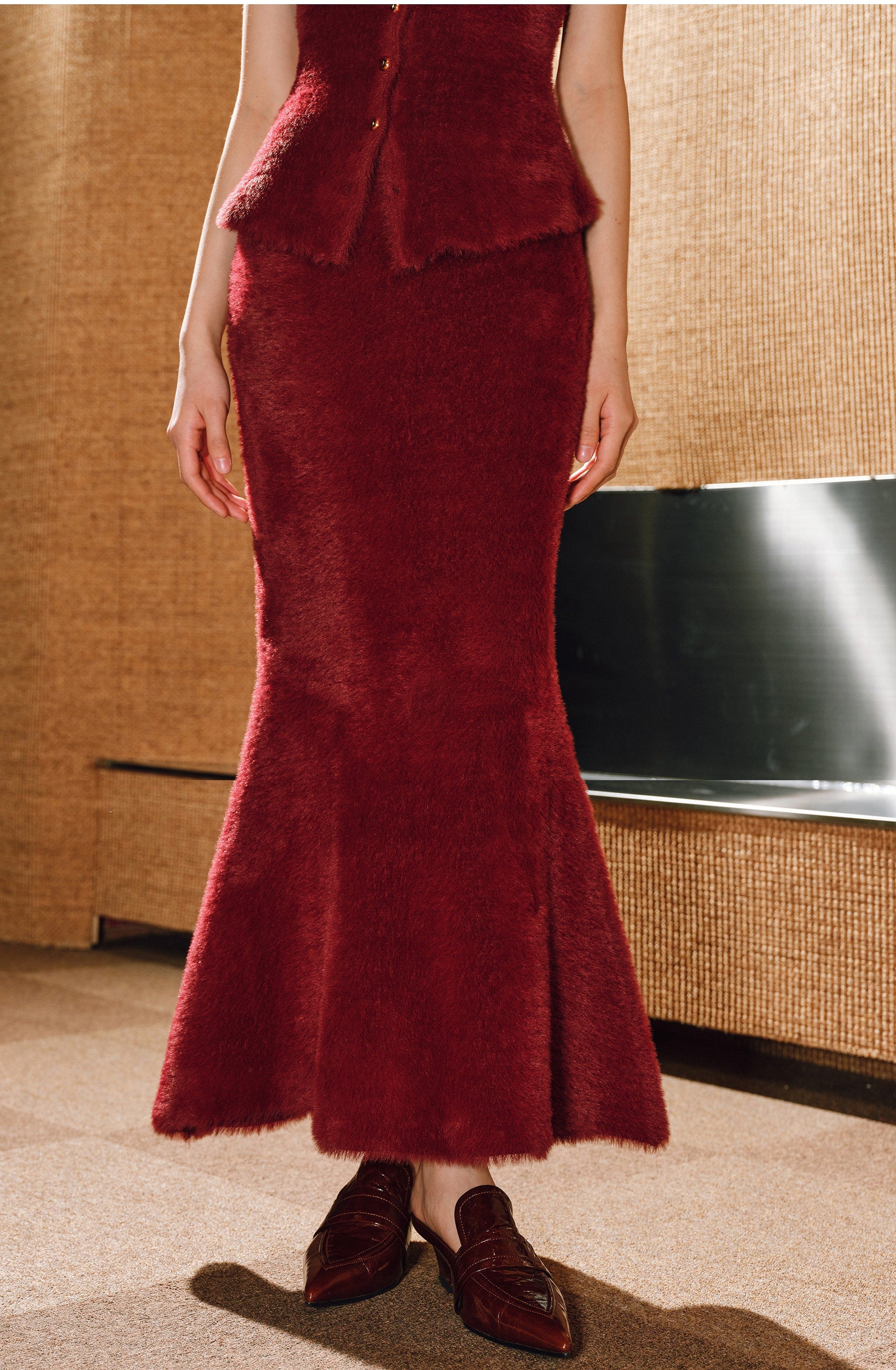 WANGXO | Ultimate Fluffy Mink Hair Texture Lazy Soft Cardigan, Matching Vest & Elegant Fishtail Skirt Set- KIMI ?