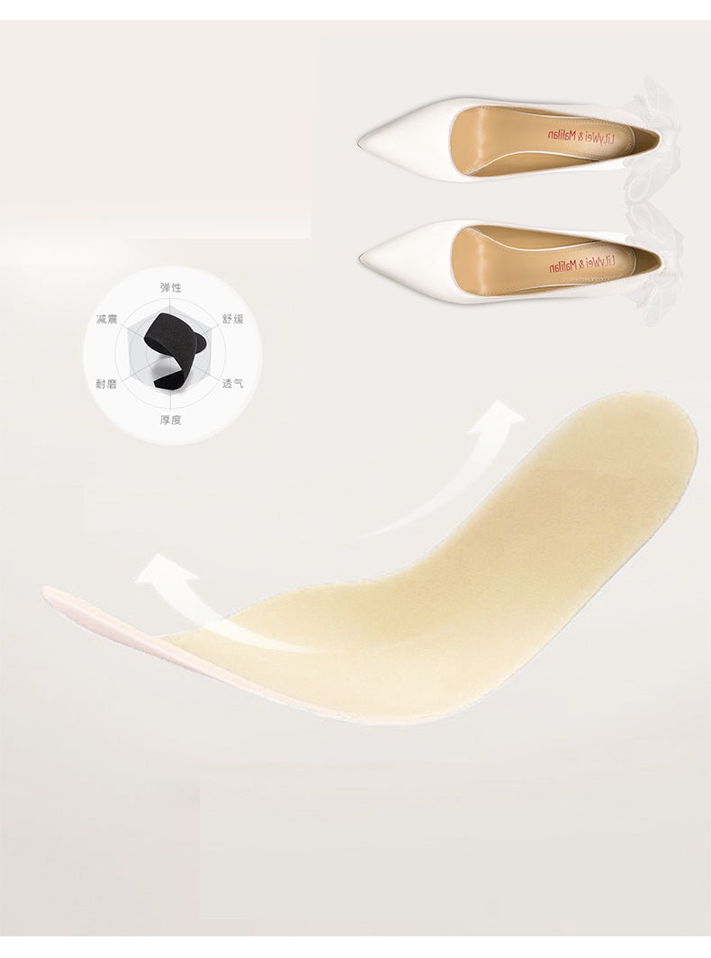 This wedding shoe features a pedal closure, a plain pattern, an elegant style, a white color, a pointed toe, a fine heel, a rubber sole, a sheepskin inner material, a shallow mouth opening, an adhesive shoe making process, a sheepskin insole, a single shoe style, and a satin help surface material.