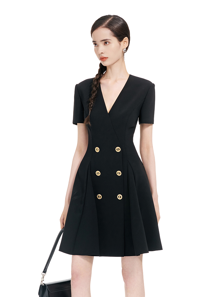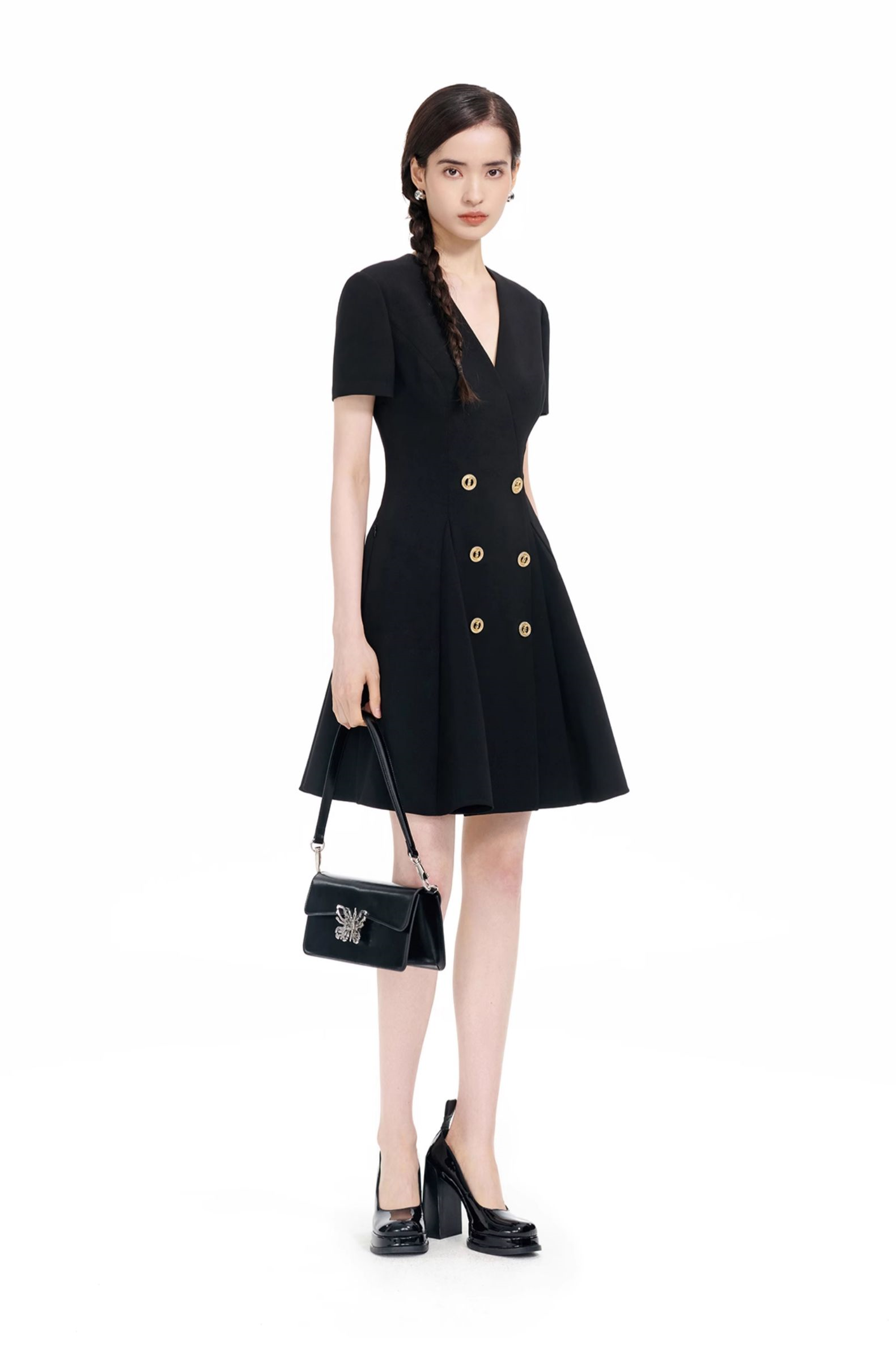 YES BY YESIR | Big A-Line Double-Breasted Casual Dress - VARESSA.
