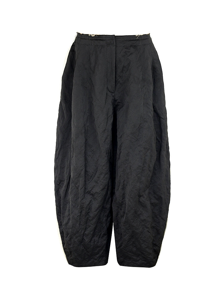 ZHUCHONGYUN black pleated woven strip loose cocoon pants--DANTE.