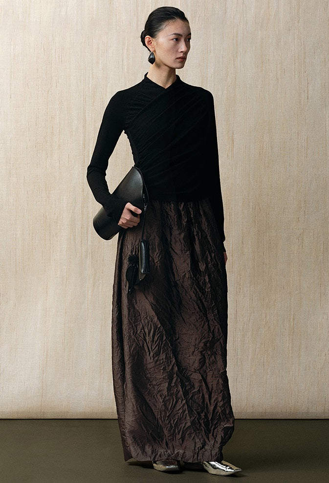 Elevate your wardrobe with the cross-collar pleated wool knit top. Crafted from premium wool, this top offers warmth and breathability, while the cross-collar design adds a sophisticated edge. The pleated detailing enhances texture and movement, making it a refined choice for both professional and casual settings. Its expert construction ensures lasting comfort and style throughout the seasons.