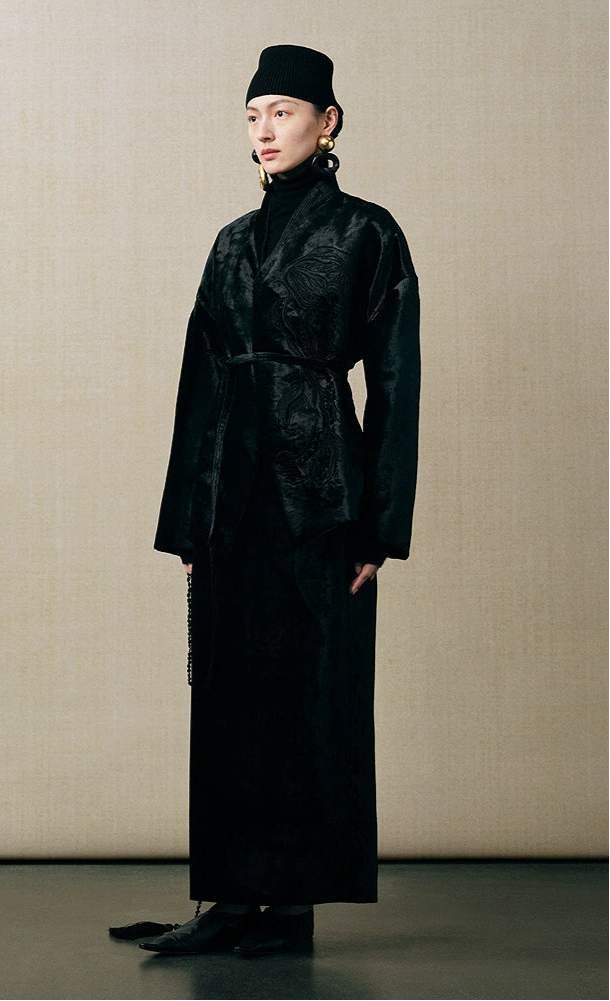 ZHUCHONGYUN velvet wrap jacket with embroidery long sleeves and a tie waist-ARTICA.