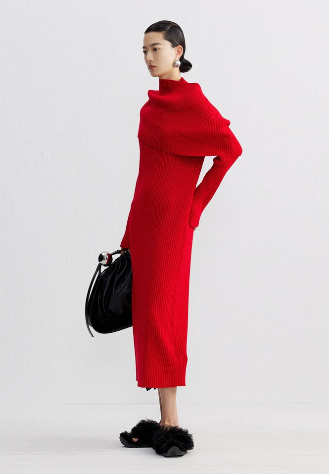 ZHUCHONGYUN Red seamless knit loose wool long sleeve dress-DECIM.