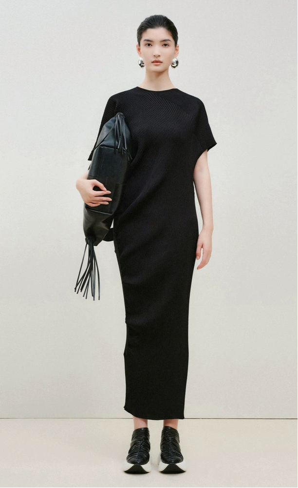 ZHUCHONGYUN Black Loose Drop Shoulder Design Knitted Dress--GRELL.