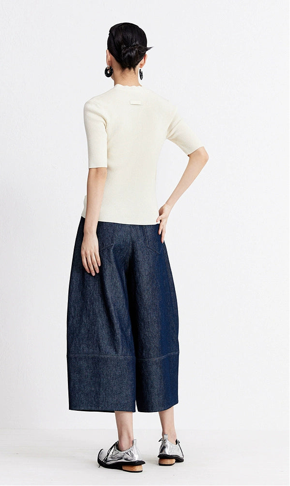 ZHUCHONGYUN Ivory slim mid-sleeve knit top-KITE.