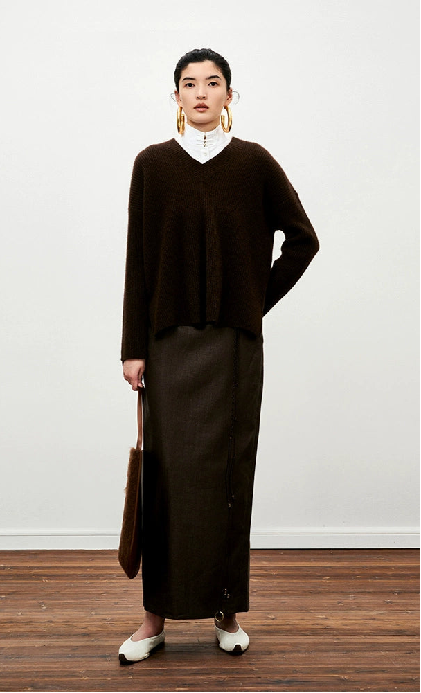 ZHUCHONGYUN V-neck sweater yak velvet knitted top--ERINA.