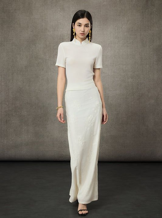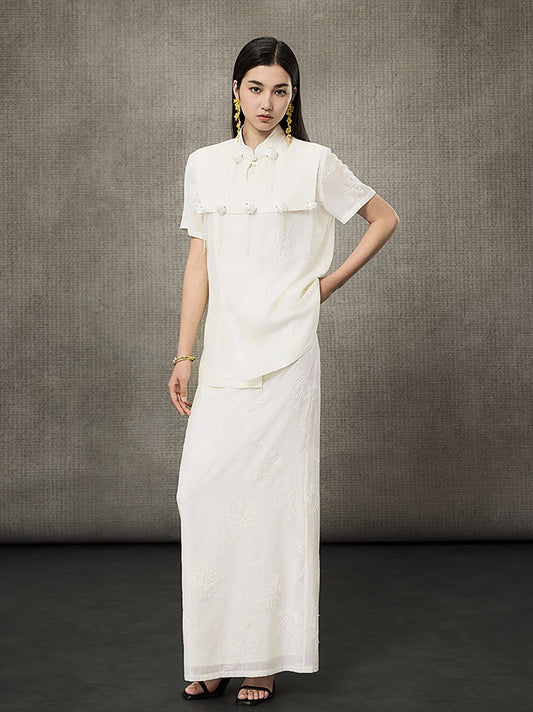 WANGXO | Handmade Beading Flared Sleeve Top & Fishtail Skirt Set -RAWLING.
