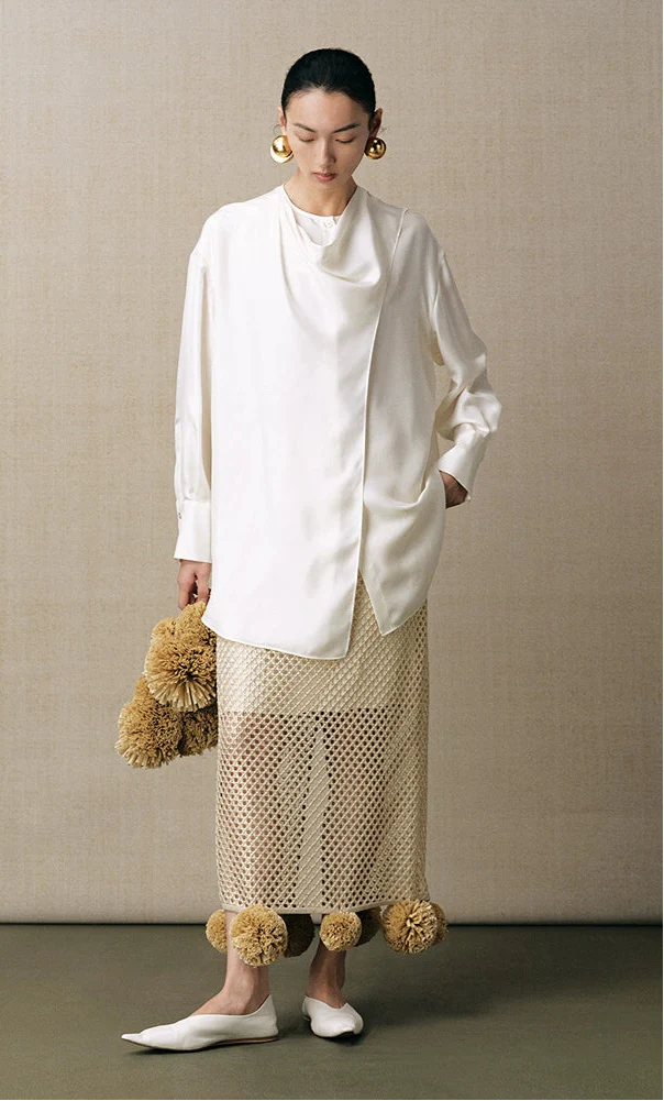 ZHUCHONGYUN white long-sleeved silk shirt-MULBERRY.