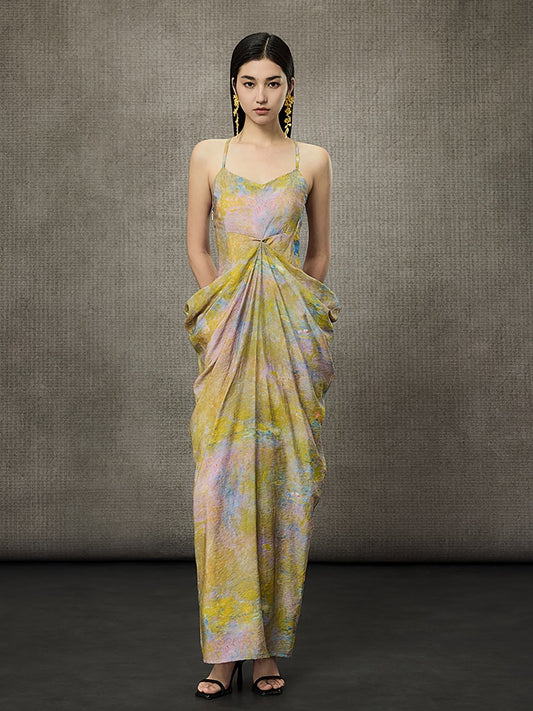WANGXO | Luxe Cupro Maxi Sleeveless Drape Dress -ISOLINA.