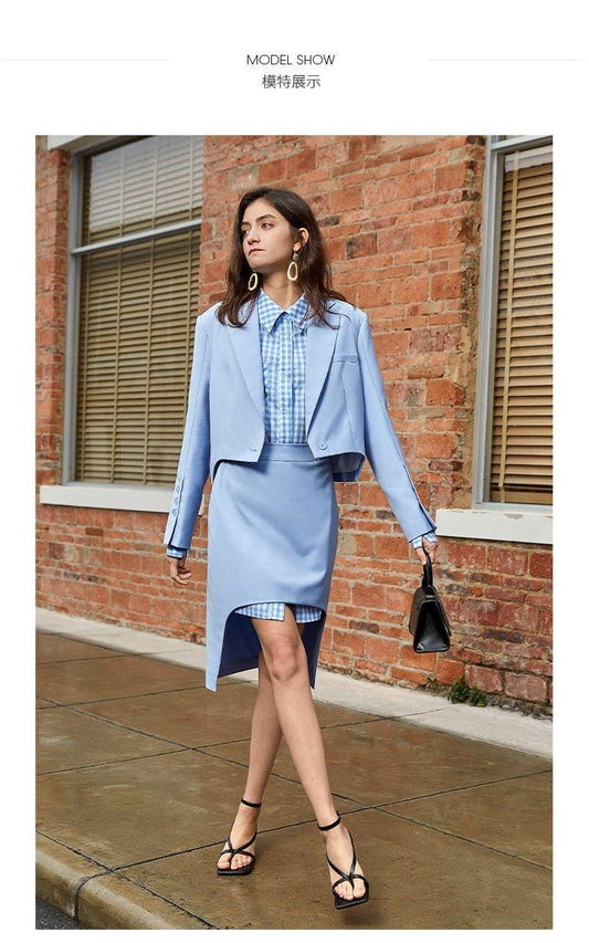 Skirt Suit + Jacket Short Mini Skirt Fashion Two - Piece Sets light blue suit - Hemi