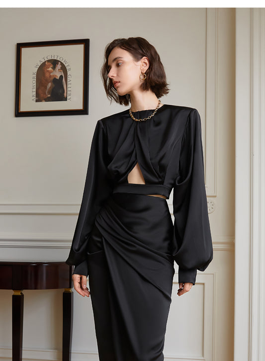 Black long sleeve midi skirt gorgeous dress- Ceci