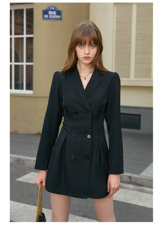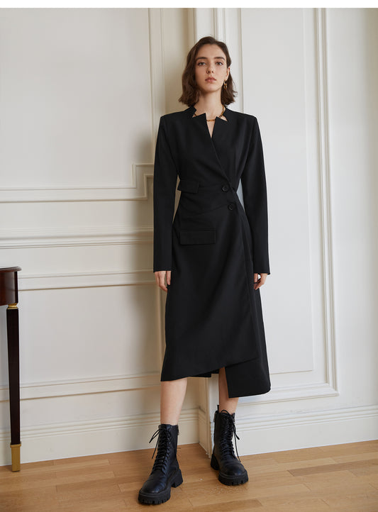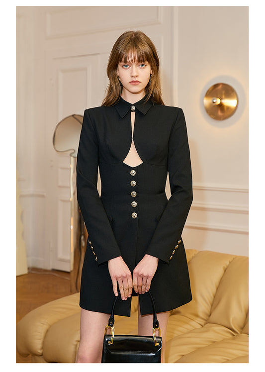 Gorgeous high-end, -little black dress features a , single-breasted- Heria