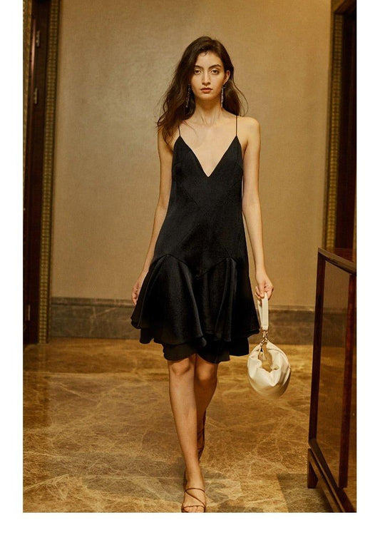 Sexy Deep V Neck backless 20's Retro Party Vintage lbd black cocktail Dress - Leiab