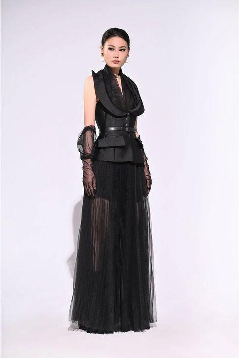 Elegant Black simple long slit sweetheart neckline of shoulder bubble sleeve velvet evening dress - Sikia