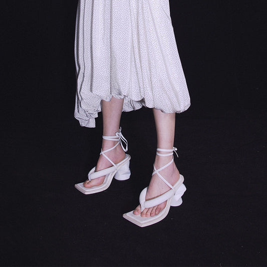 Mayali square toe heeled clip-on sandals leather strap heels - Igore