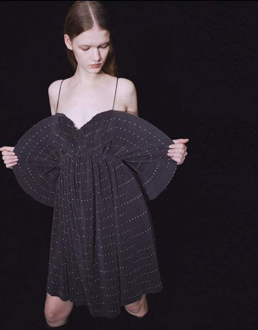 MAYALI V-neck corset scalloped pressed slip pleated dress - jjii